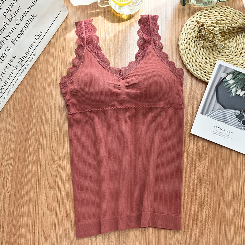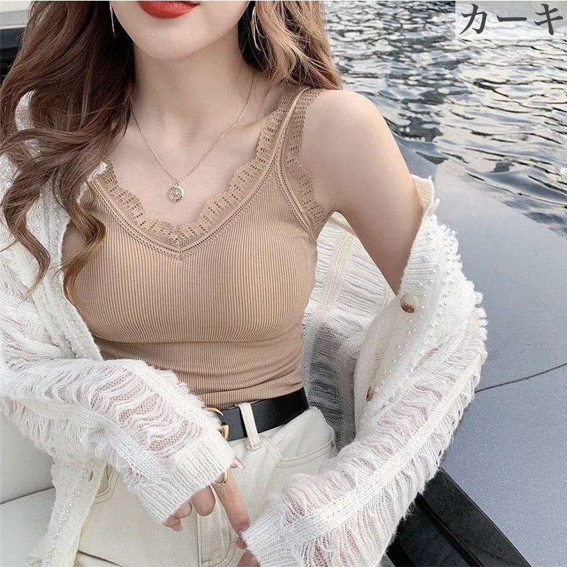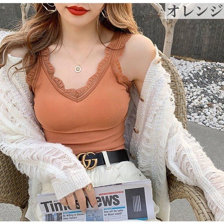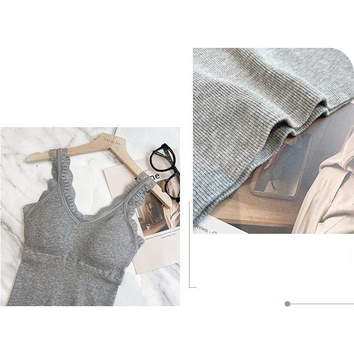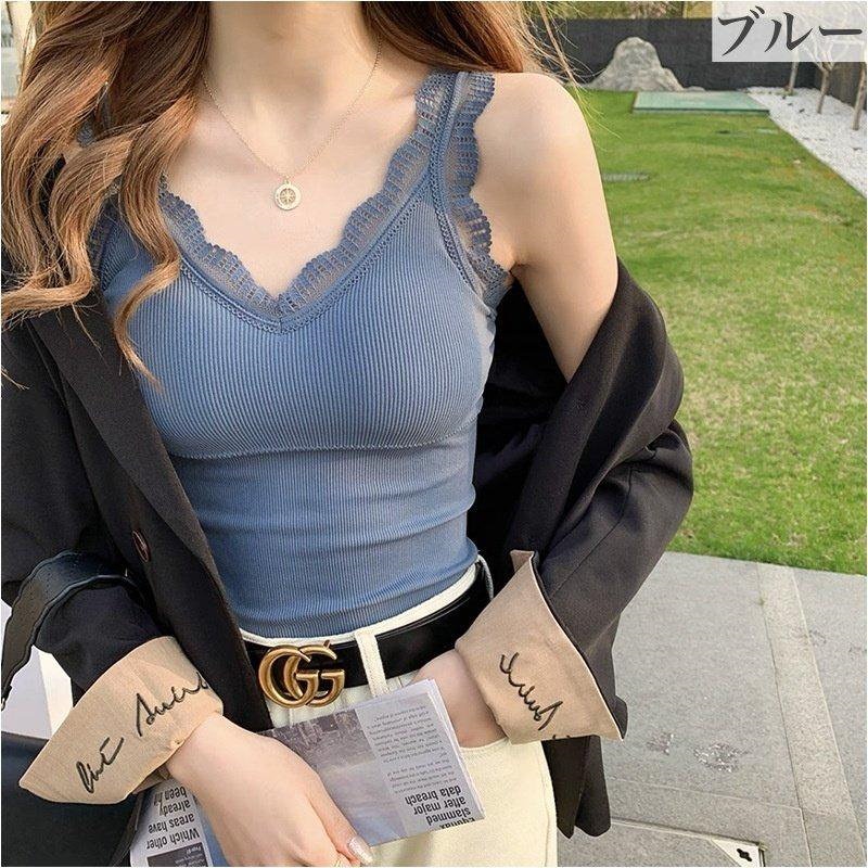 可愛いブラトップ2枚セット パッド付き キャミソール 女性 インナー 下着 肌着 Vネック カップ付き ブラキャミソール レース シンプル お洒落