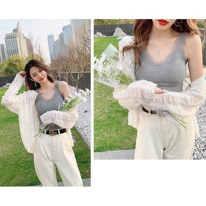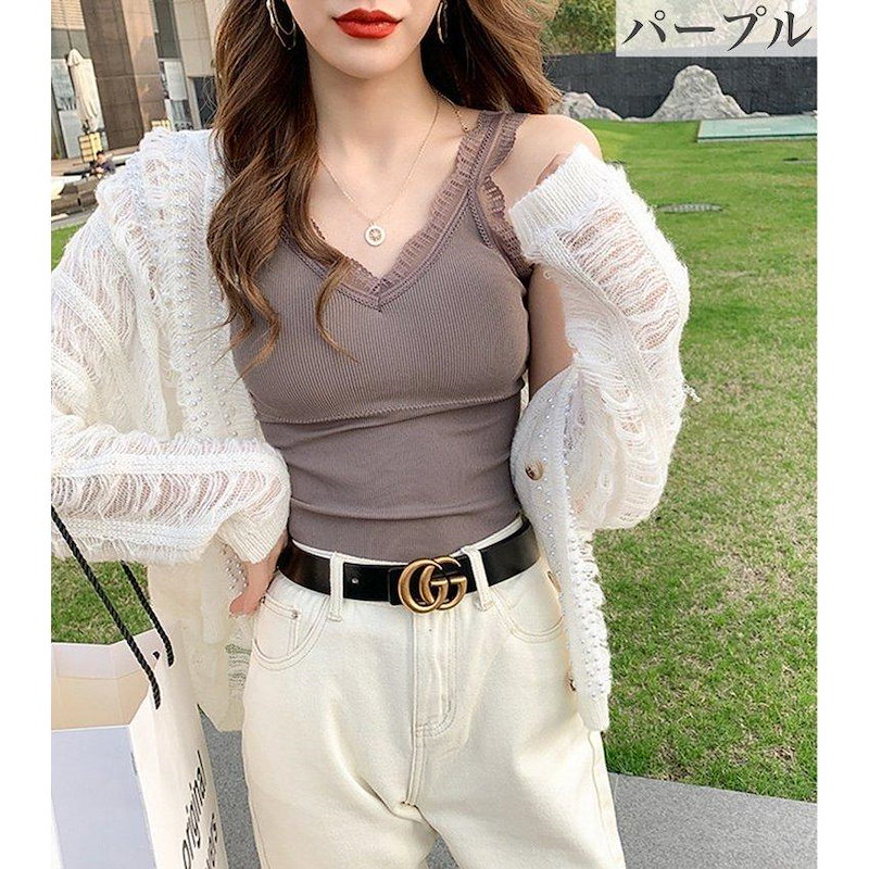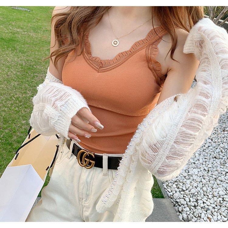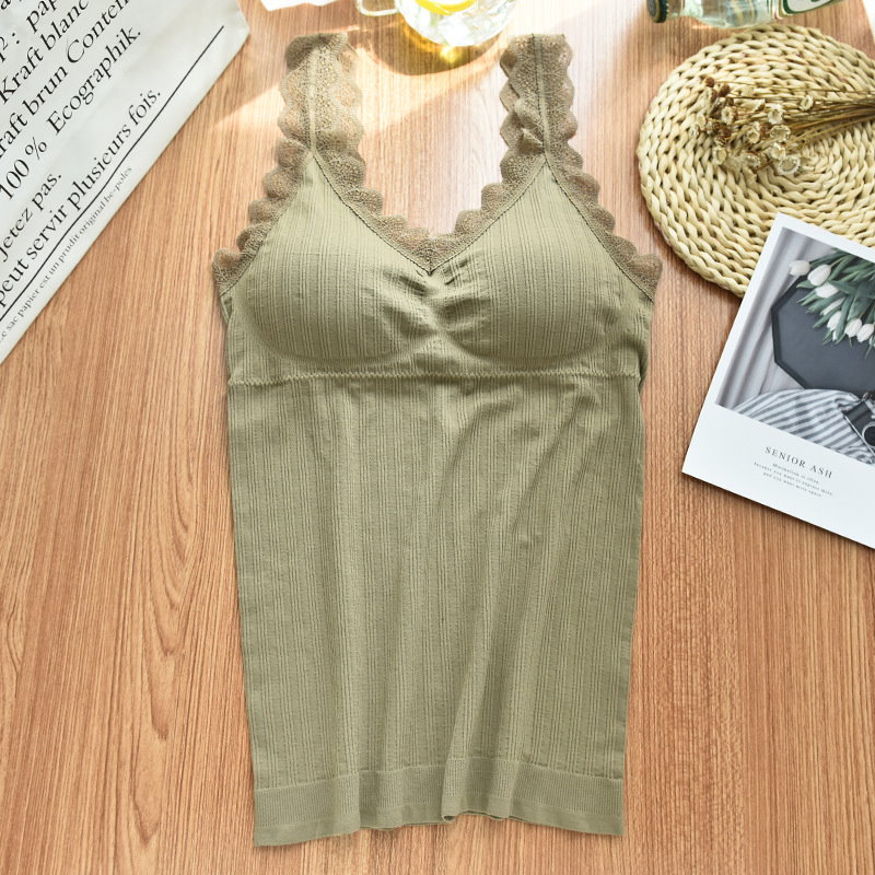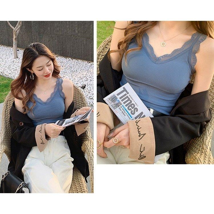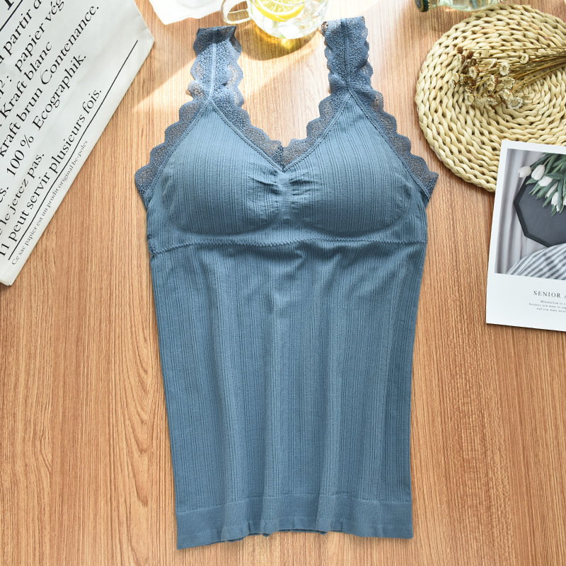 可愛いブラトップ2枚セット パッド付き キャミソール 女性 インナー 下着 肌着 Vネック カップ付き ブラキャミソール レース シンプル お洒落