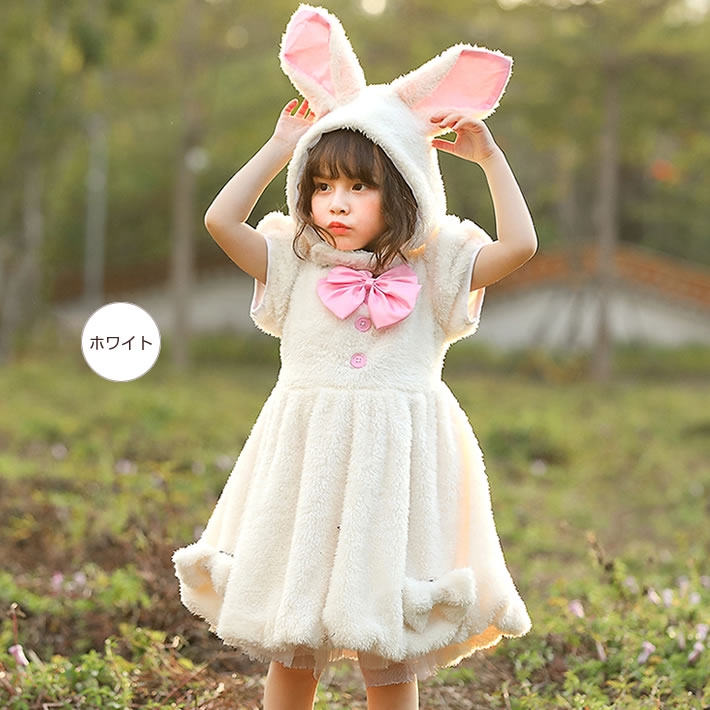 子供 コスチューム ウサギ耳 帽子付き リボン付き モコモコ ワンピース 兎耳 クリスマス服 キッズ 着ぐるみ 仮装 女の子 もこもこ ジュニア 兎 衣装 着る毛布 ジュニア服 暖かい 女児 キッズ服