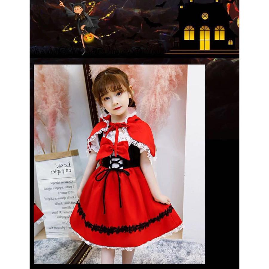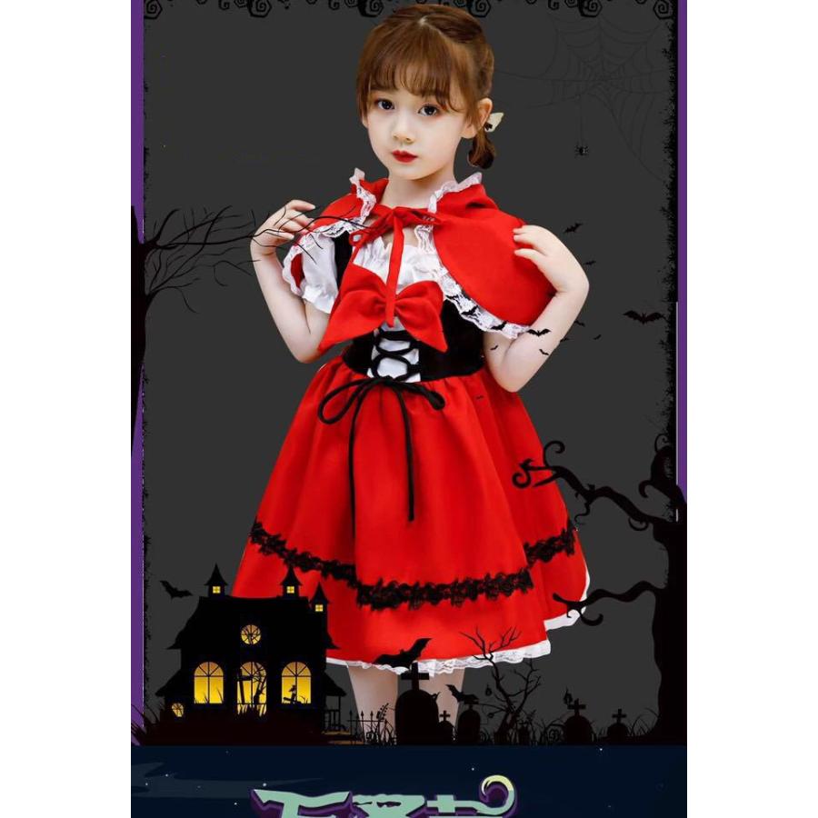 子供ドレス 衣装 赤 ワンピース コスチューム パ 女の子 ハロウィン 赤ずきんちゃん 赤ずきん 子供 ケープ 発表会 コスプレ 仮装 キッズ 子供服 童話