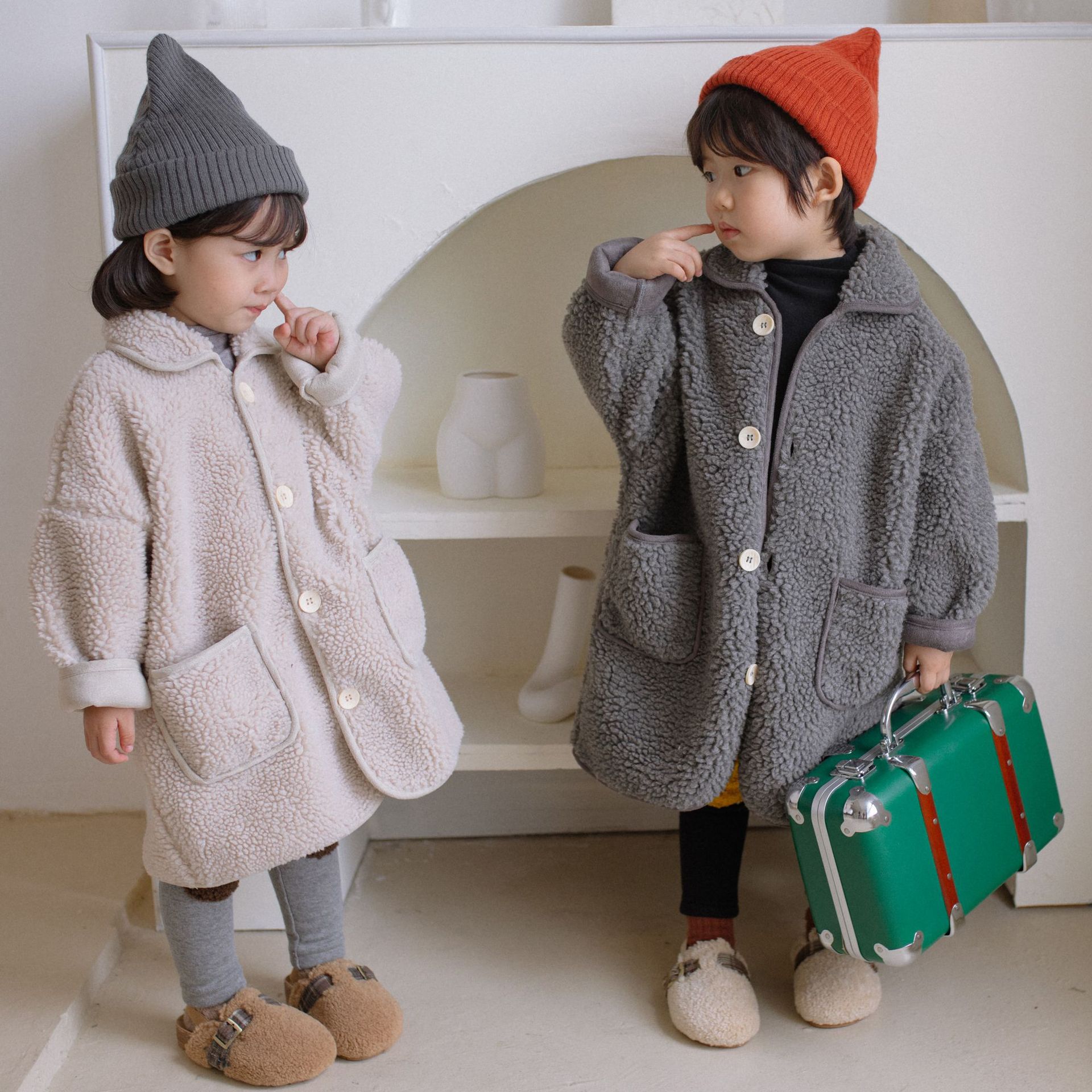 男女の子供の中でロング丈のラム毛のコート冬服新型韓国版子供用コート保温毛皮一体 アウター