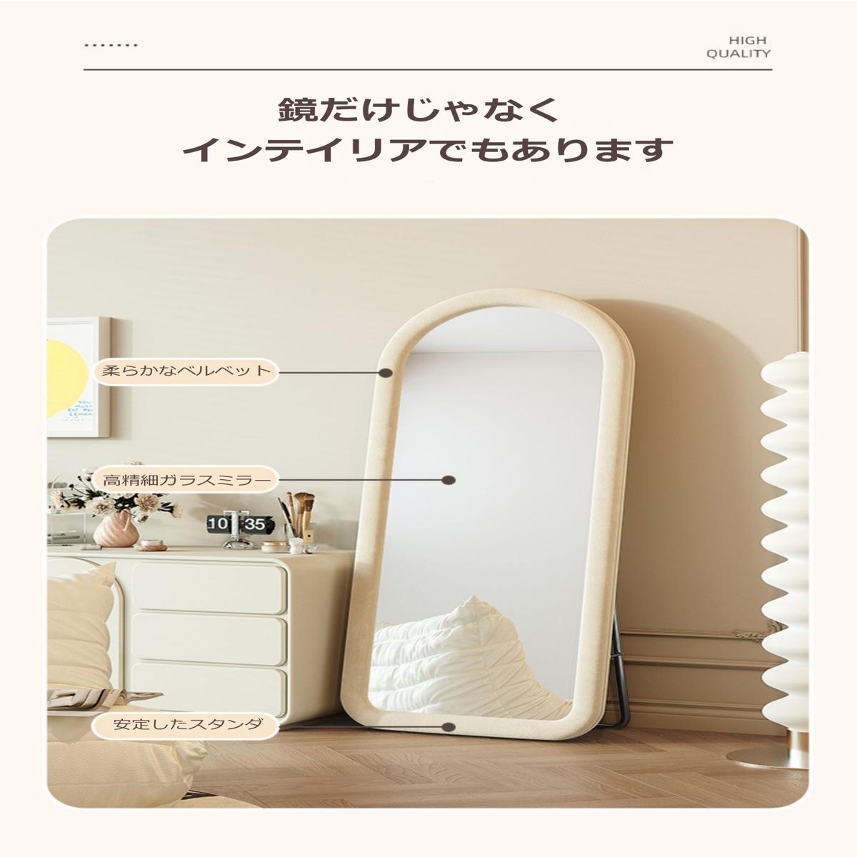 ●全身をしっかり移すアーチ型のファブリック枠姿見鏡です。 感性あぶれるテザイン姿見鏡でいつものお部屋がおしゃれな空間になります。サイズ:50*160cm