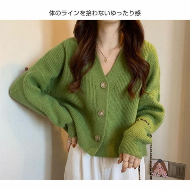 ニット カーディガン レディース 長袖 トップス 羽織り ベーシック オーバーサイズ 体型カバー Vネック 秋 冬 カーディガン