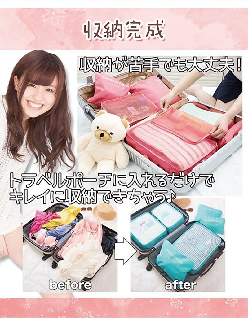 2個購入で100円割引 トラベルポーチ 6点セット アレンジケース 旅行ポーチ 旅行用 収納ポーチ 収納 おしゃれ 衣類 小物収納 靴 下着 洗面用具 出張整理 小物入れ 軽量 防水 大容量