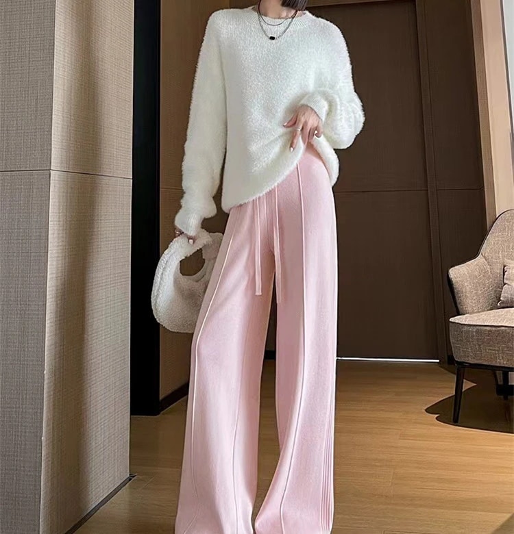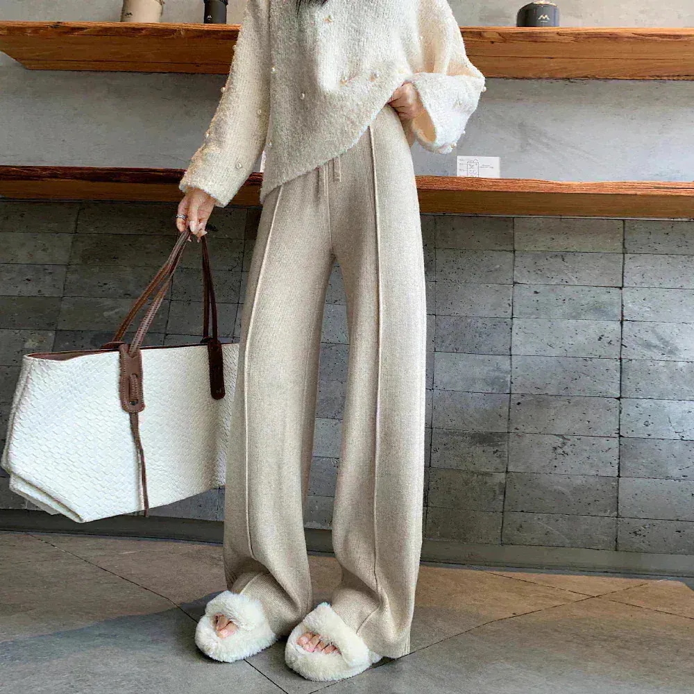 A W-NEW4色ニットワイドパンツガウチョフレアパンツワイドパンツスリット入りボトムスニット ロングパンツ