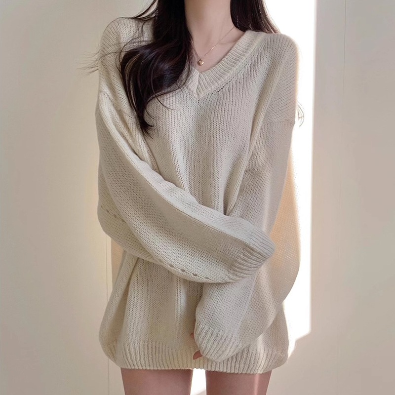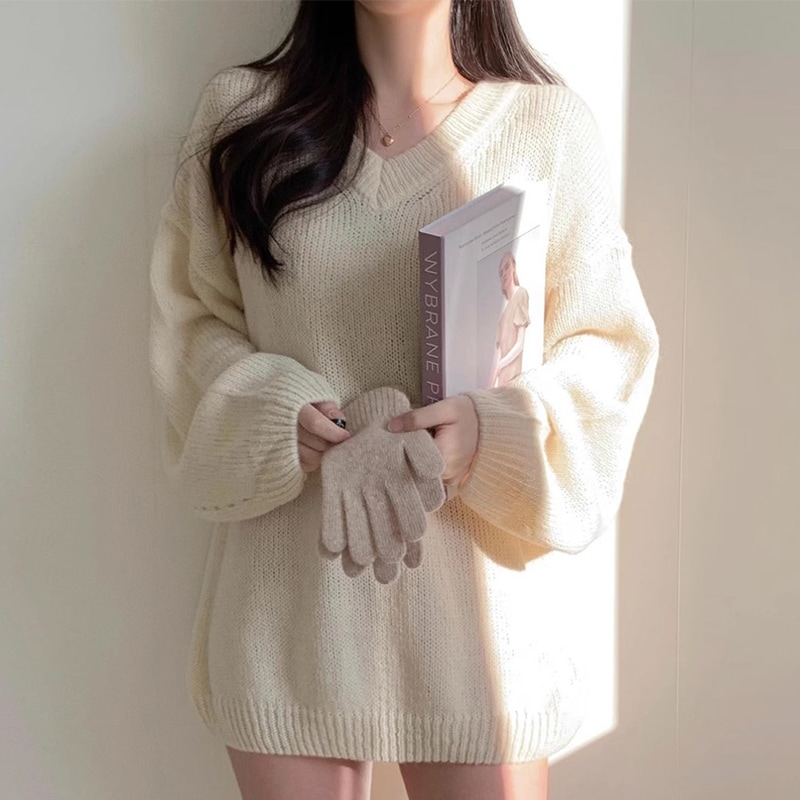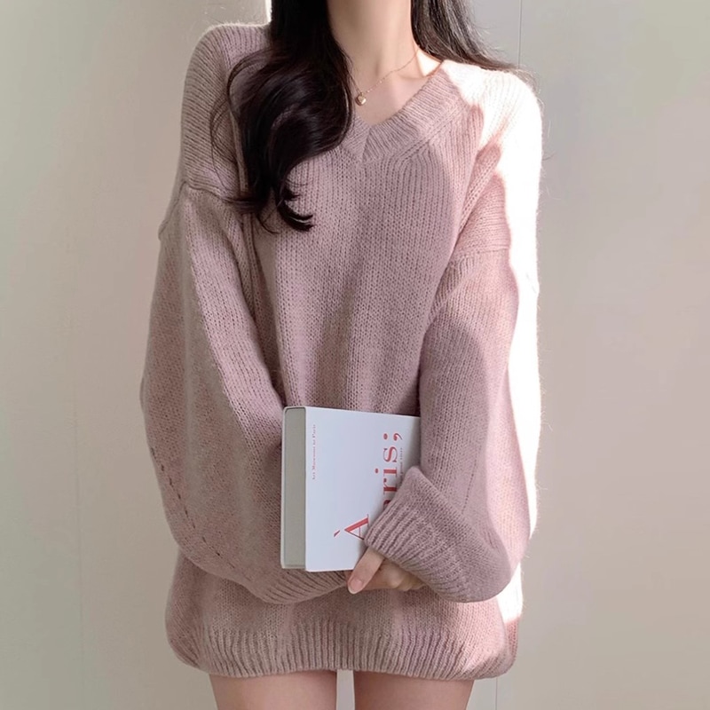 シンプルゆったり人気ニットセーター可愛新作Vネックミニニットワンピース ニット
