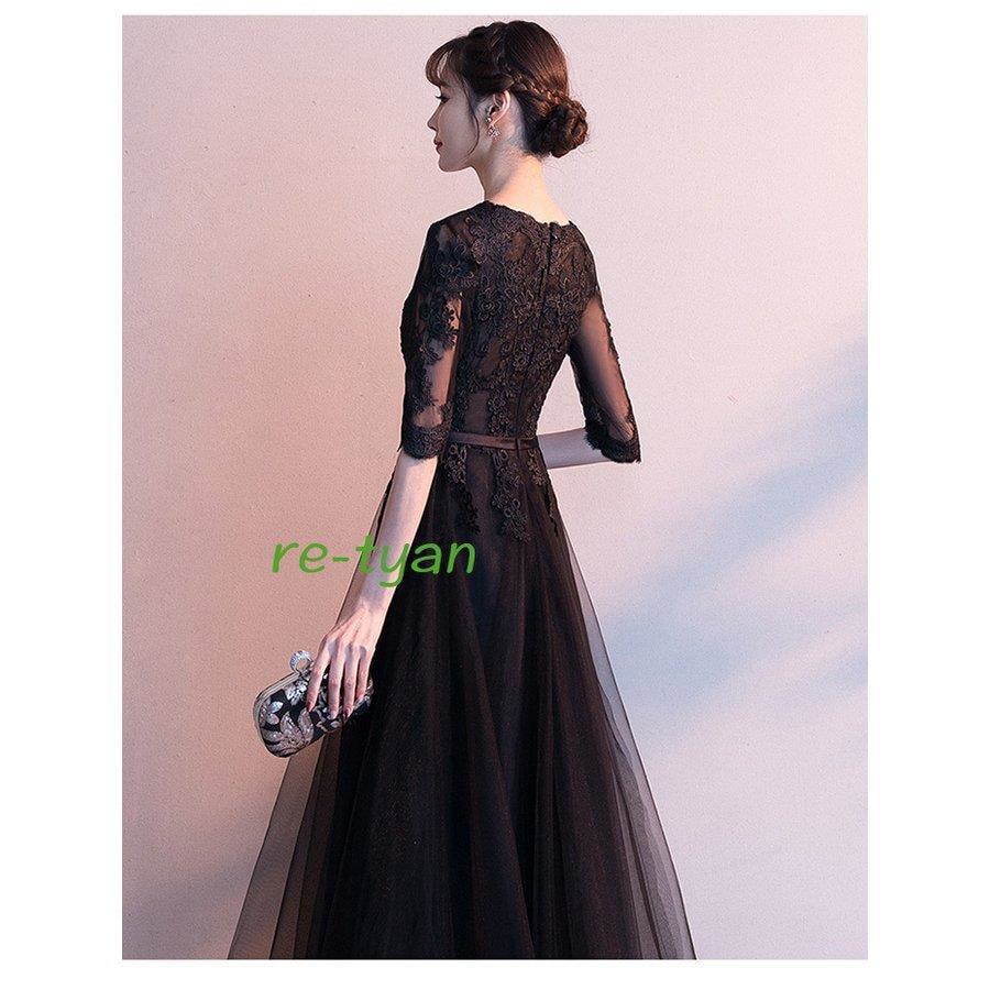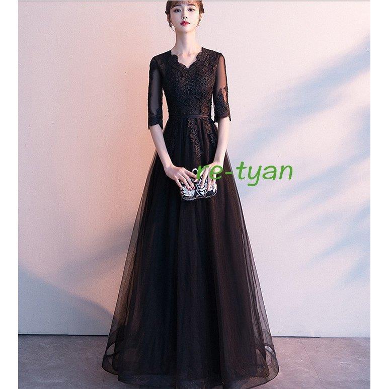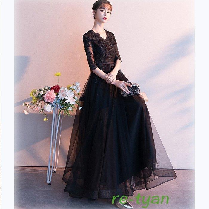 ロングドレス 黒 演奏会パーティードレス 結婚式 ワンピース 発表会 20代 30代 40代 50代 春夏秋冬 ファスナー 大きいサイズ フォーマル二次会上品 Vネック
