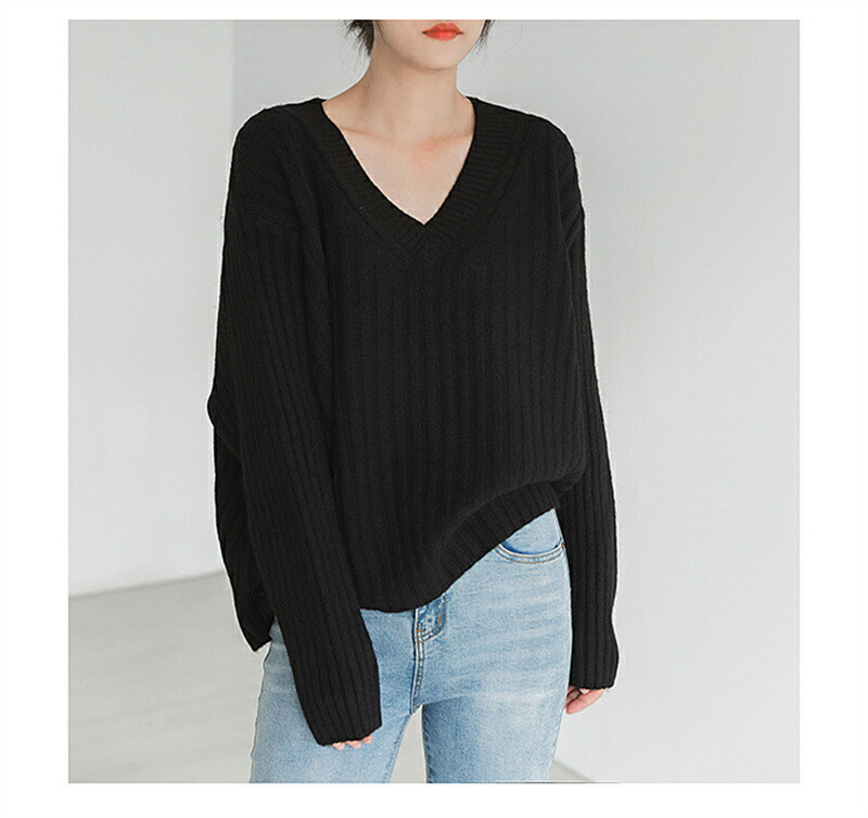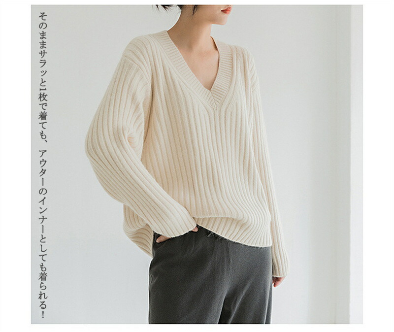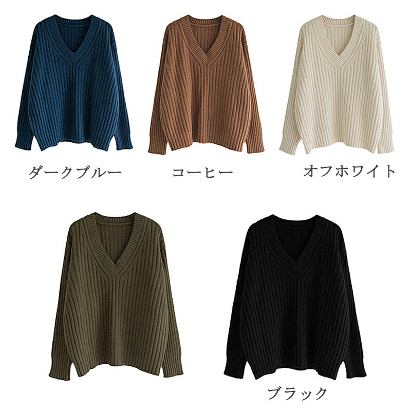 ニット トップス レディース レディース ニットセーター セーター ふんわり Vネック 無地 長袖 冬 秋 プルオーバー 秋 コーデ ながそで ベーシック リブニット リブ編み 柔らかい ニット 無地