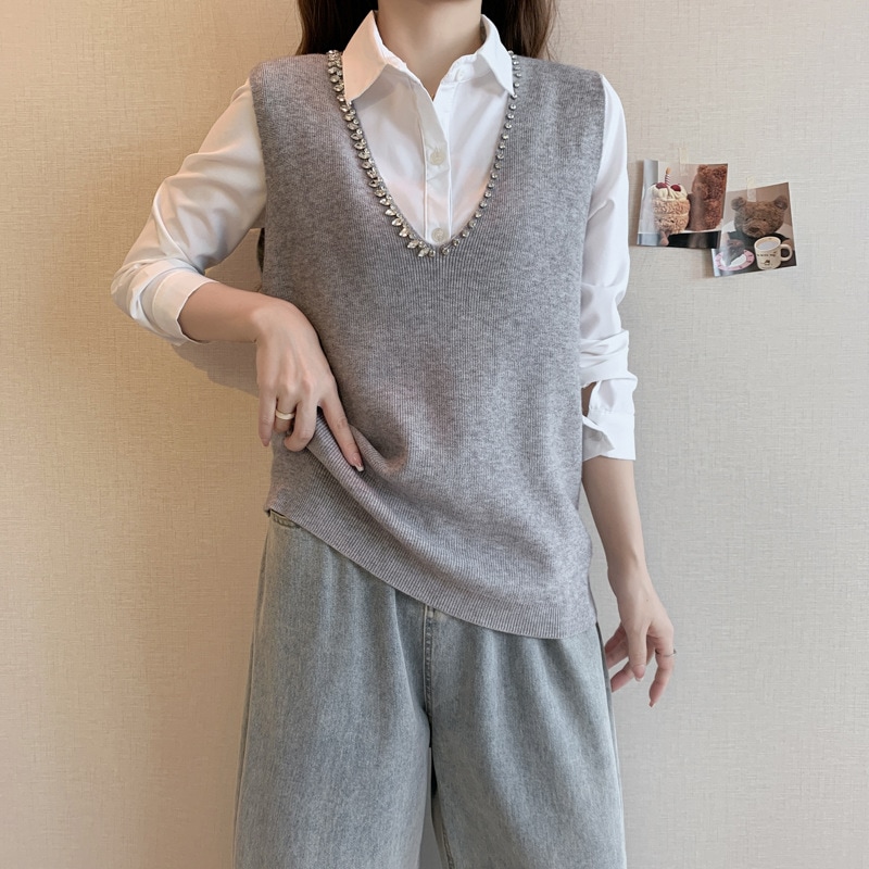 新作 シンプル 気質 通勤 カジュアル ベスト ニットベスト タンクトップ 百掛け トップス アウター ロングベスト