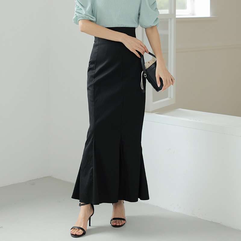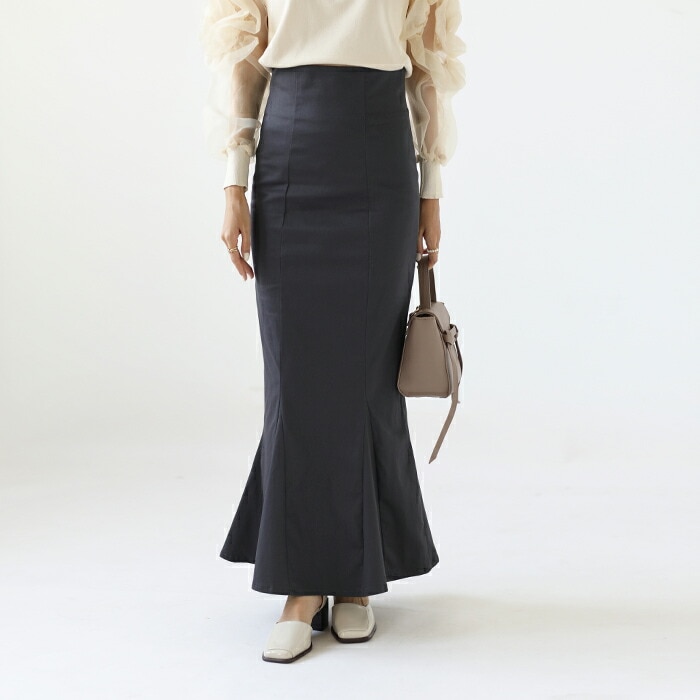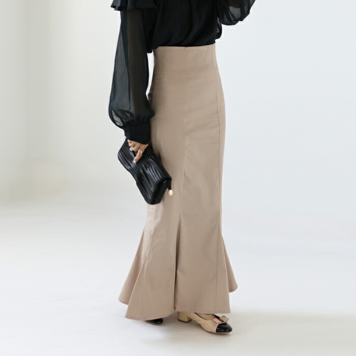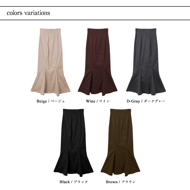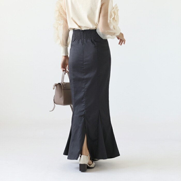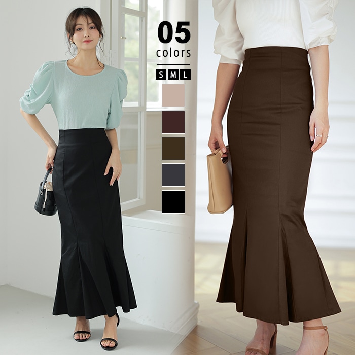 マーメイド スカート ロングスカート きれいめスカート レディース ボトムス スカート S M L 無地 ロング丈 綿 コットン バックスリット ハイウエスト スタイルアップ フェミニン