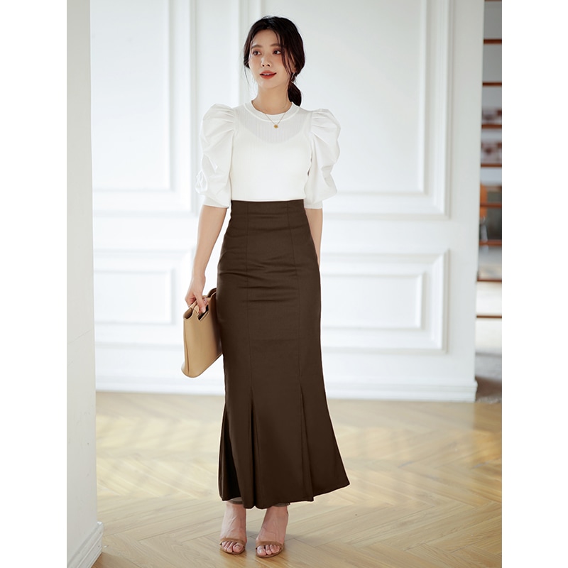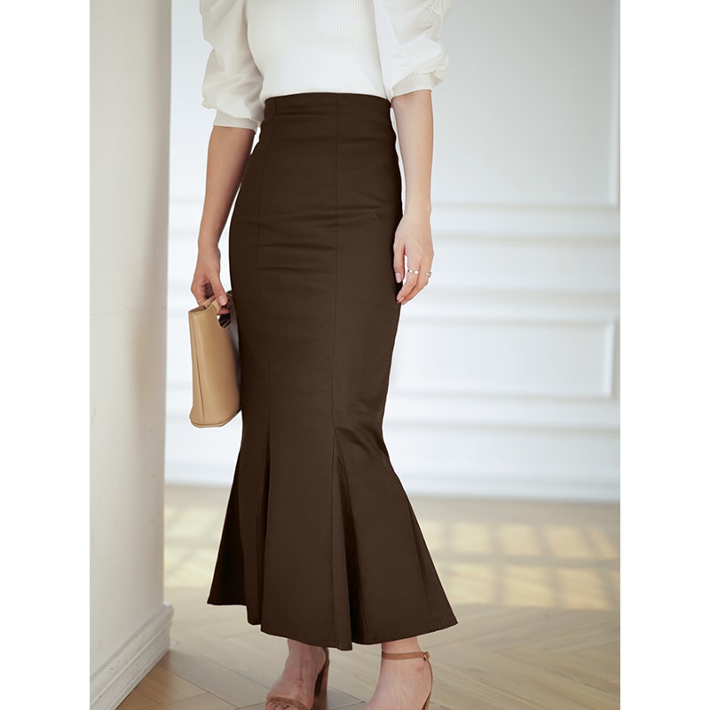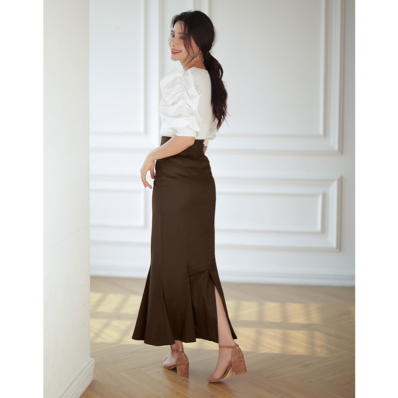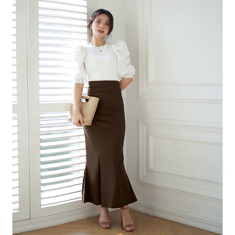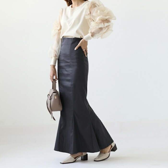 マーメイド スカート ロングスカート きれいめスカート レディース ボトムス スカート S M L 無地 ロング丈 綿 コットン バックスリット ハイウエスト スタイルアップ フェミニン
