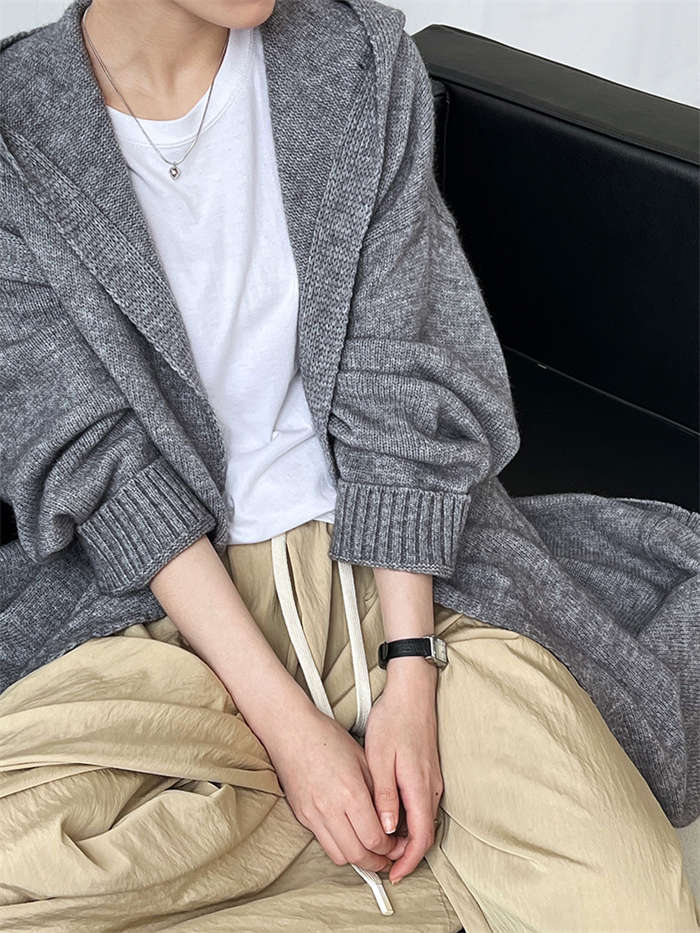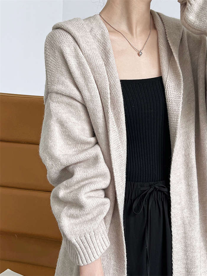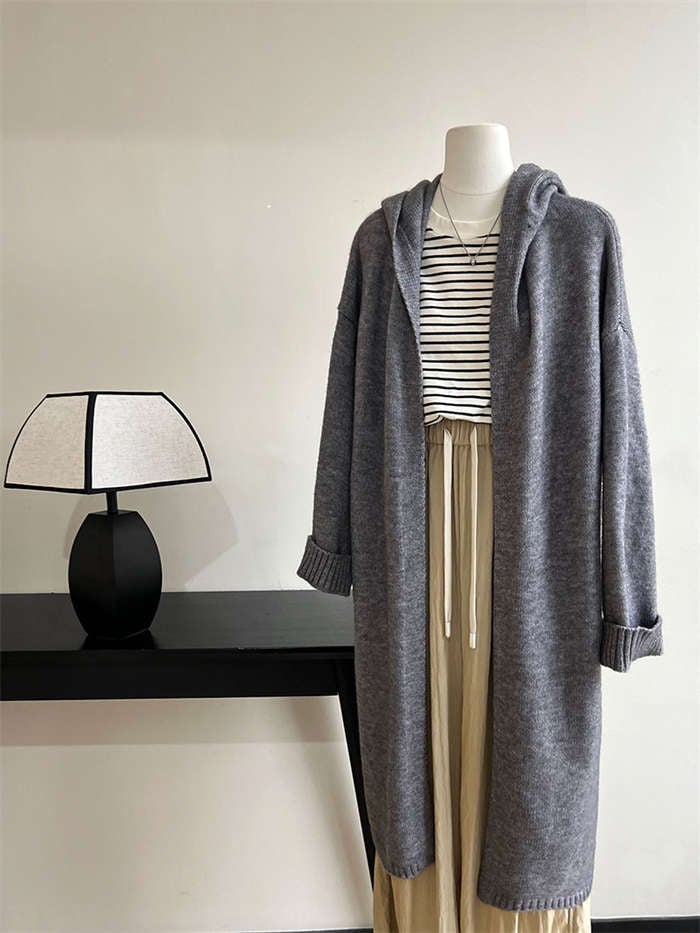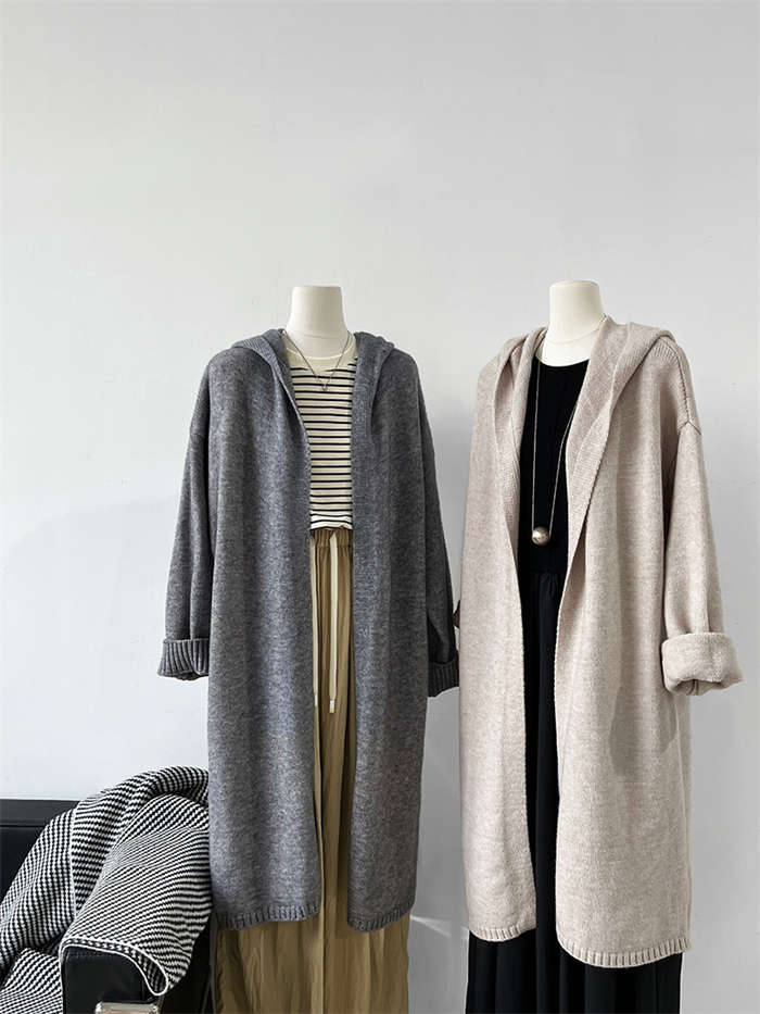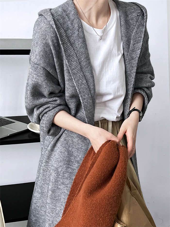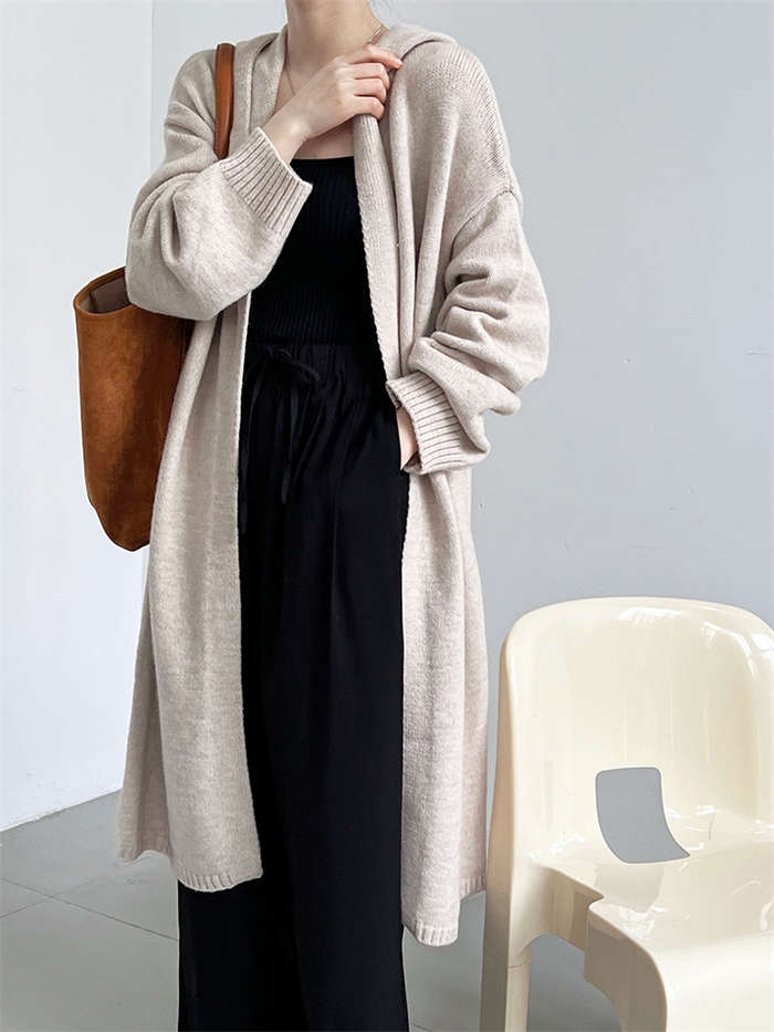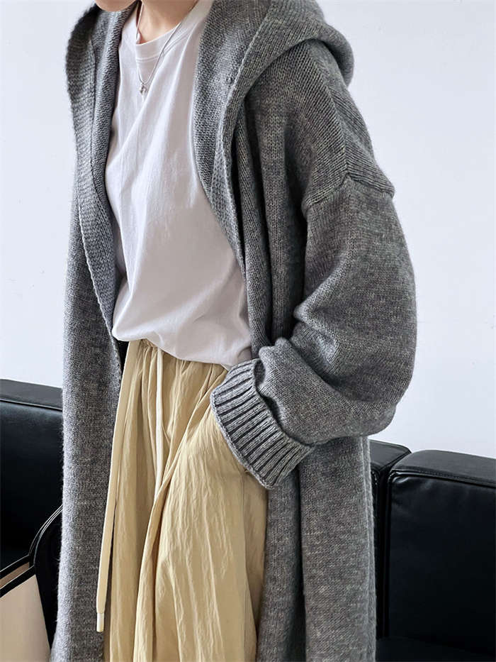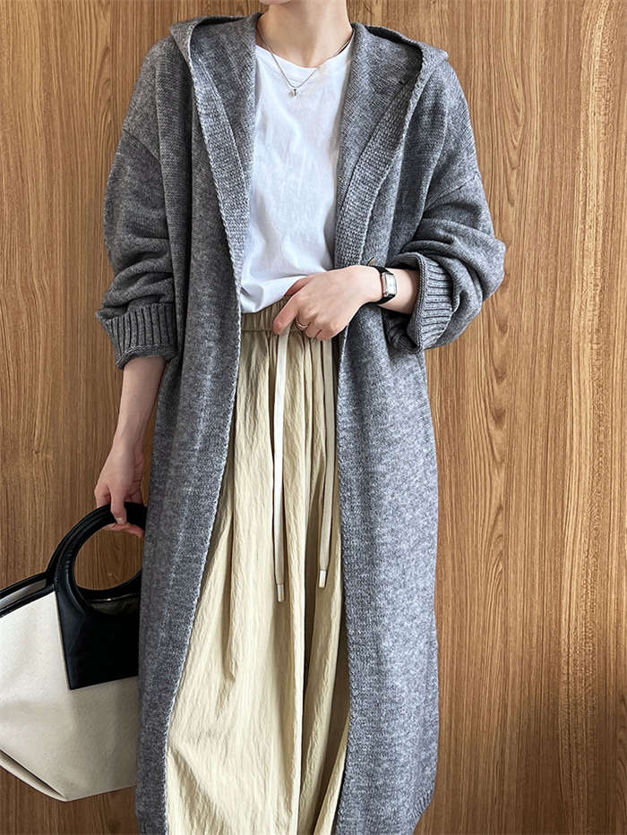 カーディガン レディース ニットパーカー 秋冬 長袖 フード付き ニット ロング カーディガン 冬物 ニットアウター アウター コート 秋コート ボリューム感 羽織り ルーズ フード 無地 きれいめ
