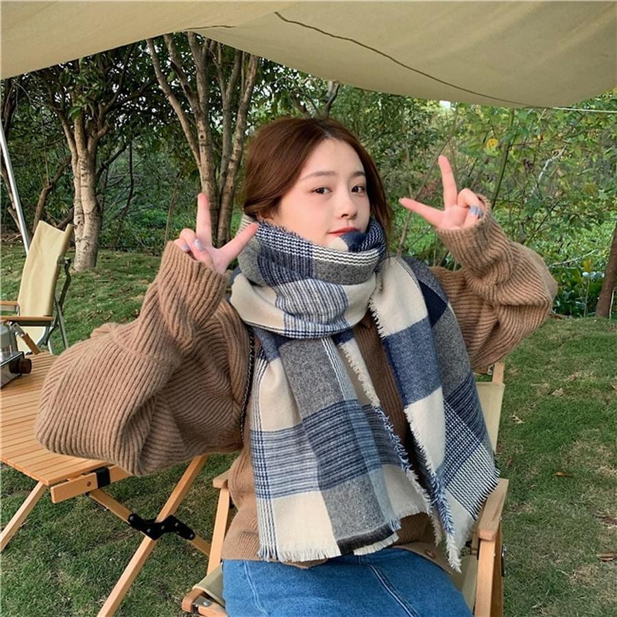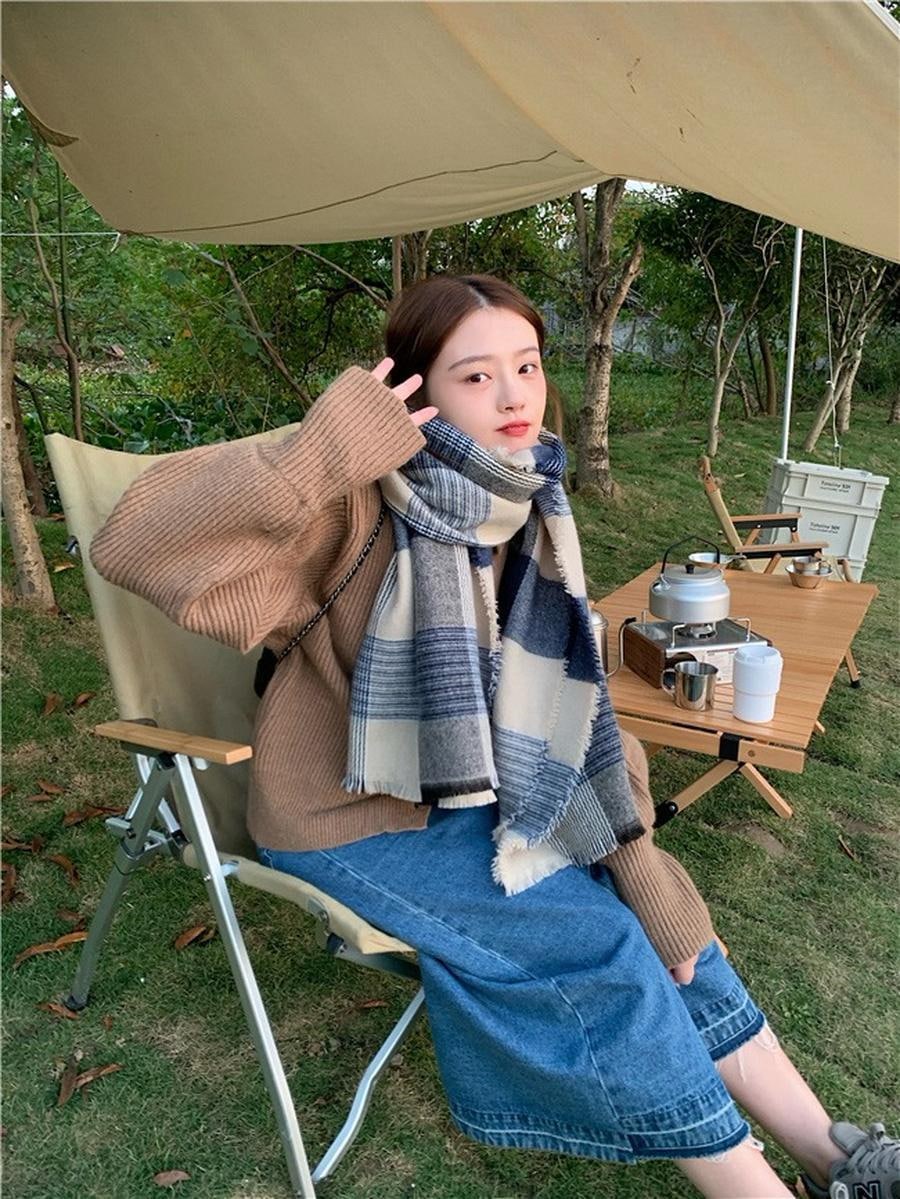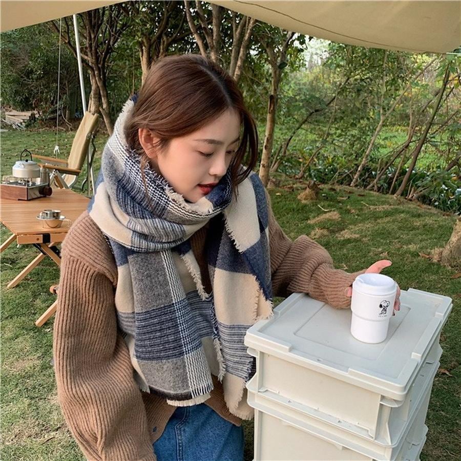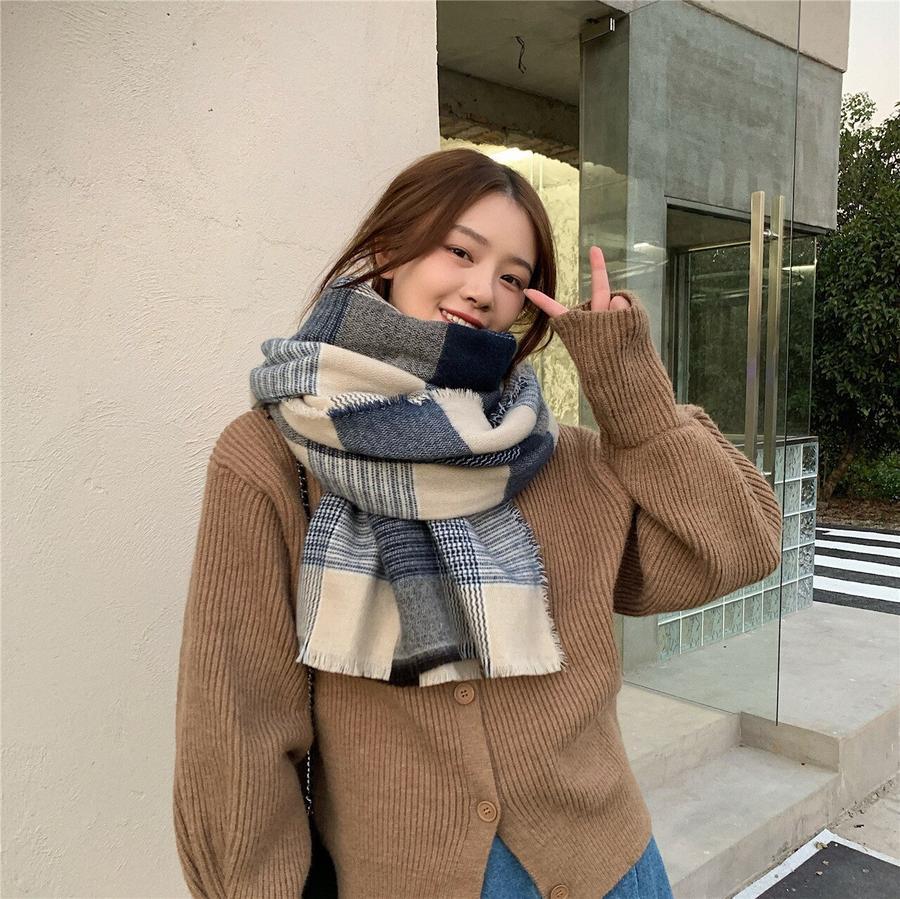 ファーウェイ デイリーマフラーマフラースト一ルマフラ一デイリーマフラー韓国語版秋冬厚手防寒ストールのレトロな格子縞模造カシミヤ学生スカーフ マフラー