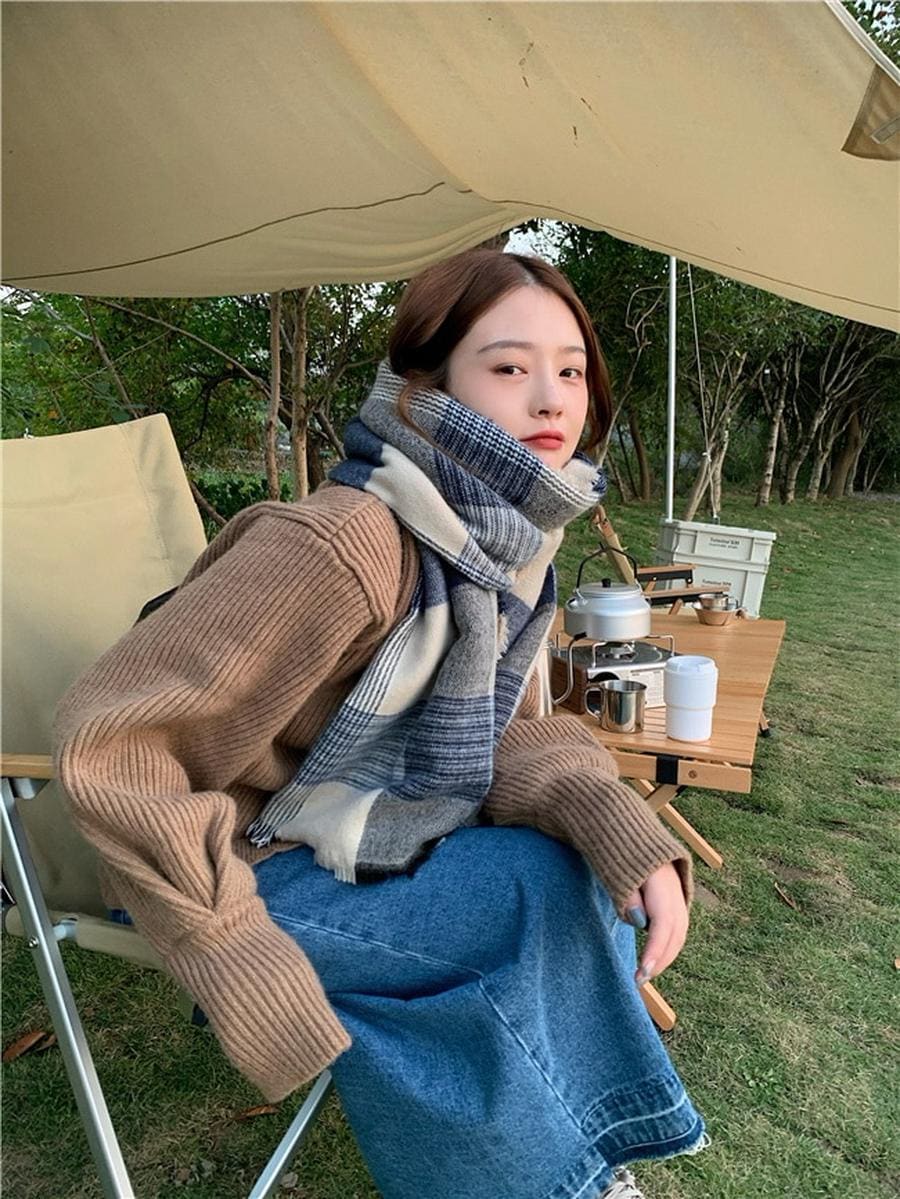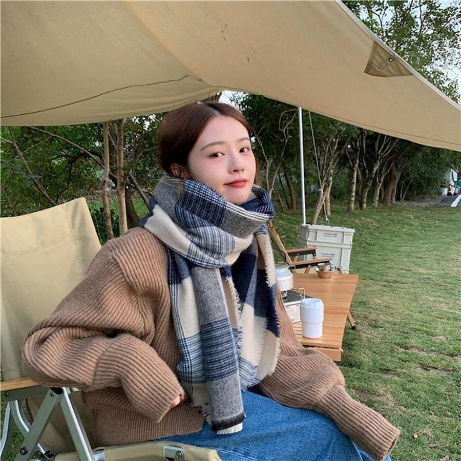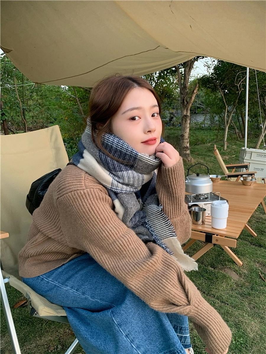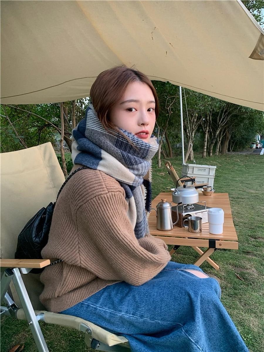 ファーウェイ デイリーマフラーマフラースト一ルマフラ一デイリーマフラー韓国語版秋冬厚手防寒ストールのレトロな格子縞模造カシミヤ学生スカーフ マフラー
