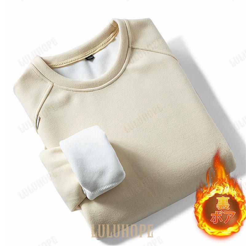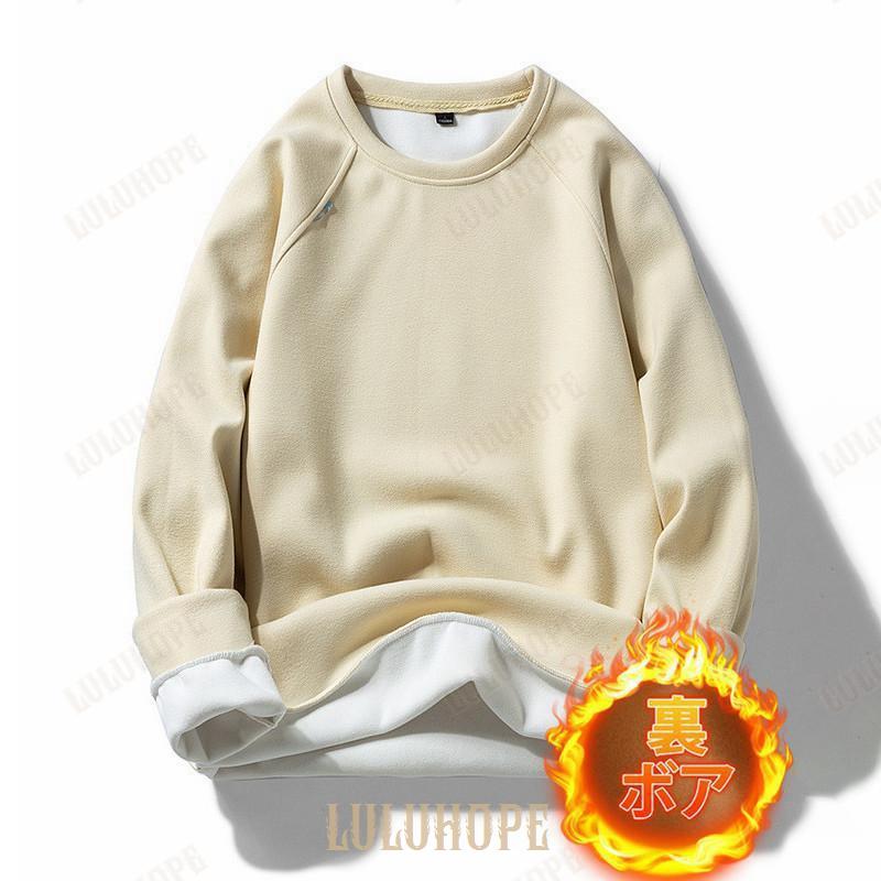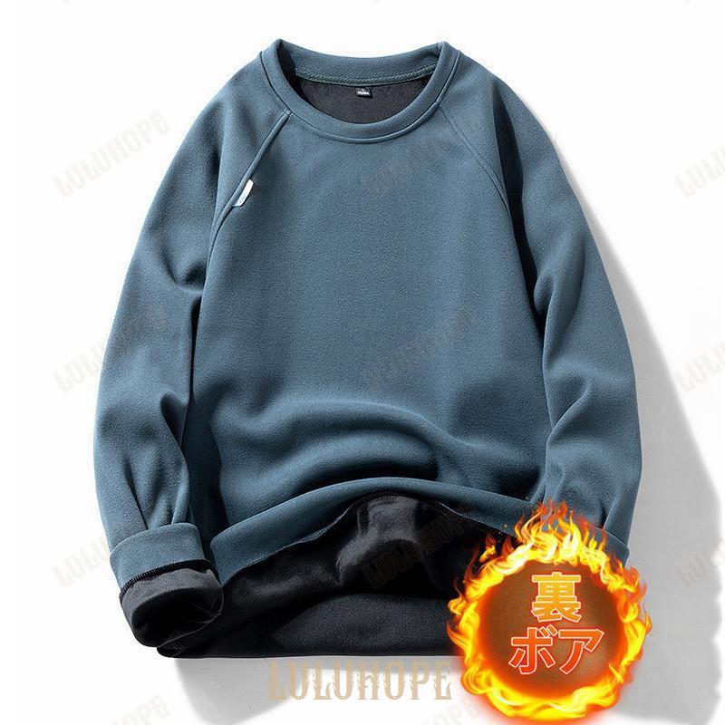 パーカー プルオーバー メンズ 裏ボア 裏起毛 長袖 シャツ クルーネック 秋服 重ね着 インナー トレーナー ゆったり 通勤 無地 スポーツ カジュアル