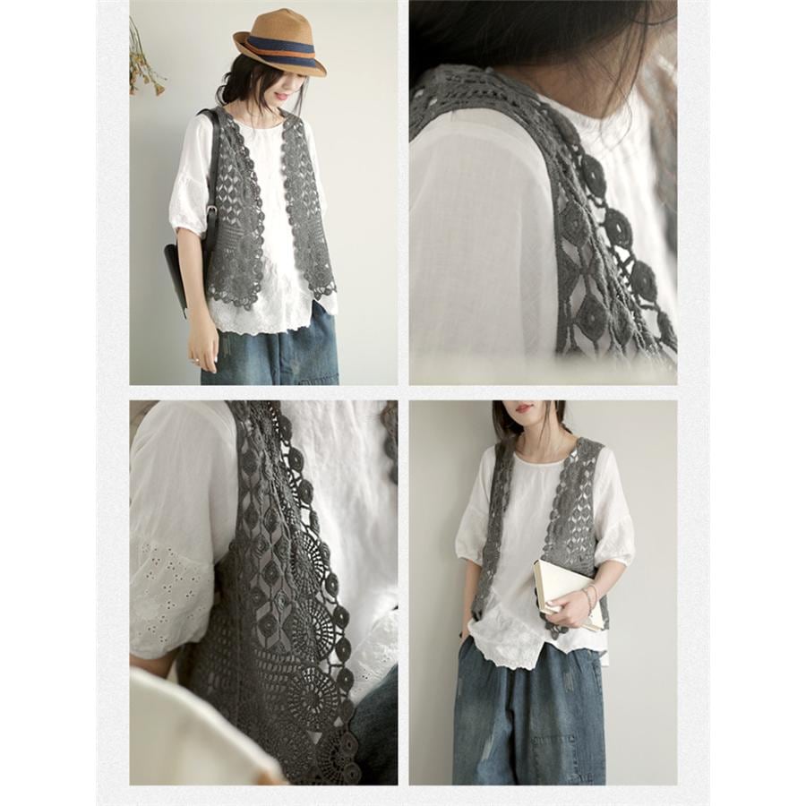 ジレベスト レディース ジレ レース 夏 春夏 おしゃれ ベスト ノースリーブ 前開き ベスト 夏 薄手 ベスト 羽織り ショート丈 花柄 透かし編み