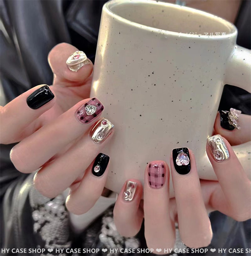 3Dネイルチップ つけ爪 韓国 光線療法 黒 ピンク 手作り キャッツアイネイル 1秒簡単貼れる 韓国ファッション ネイルチップ ショート ロング 短め 長い 可愛い シンプル ジェルネイルシール