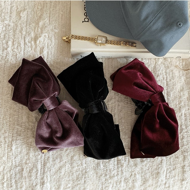 ベロアリボンヘアクリップベルベットバンスクリップヘアクリップヘアピンレディースヘアアクセサリー秋冬おしゃれ大人可愛い韓国ファッション