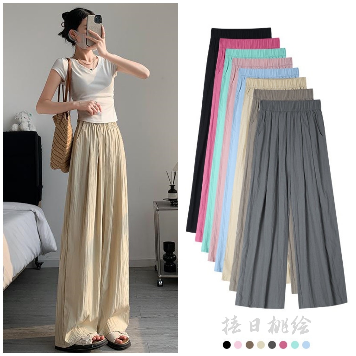 着痩せ ロングパンツ ワイドパンツ 冷感 日焼け止め 肌触り 速乾 オーバーサイズ 体型カバー 薄手 低身長 高身長 ポケット付き ひんやりレディースファッション