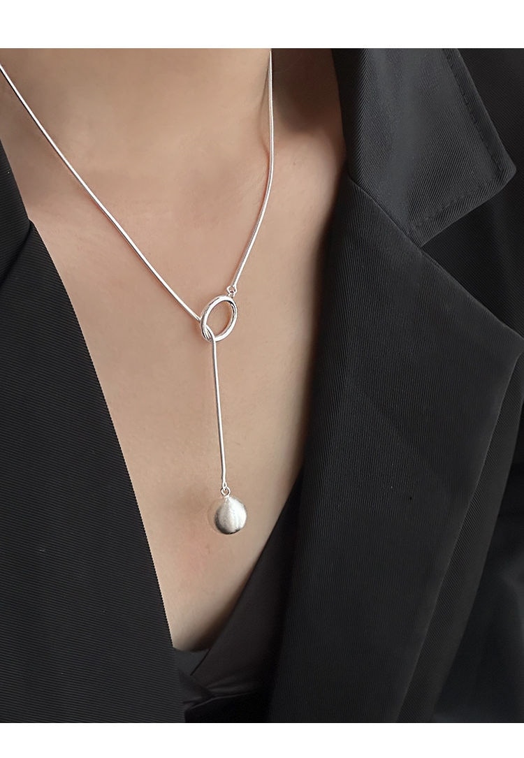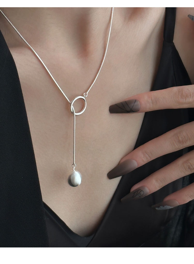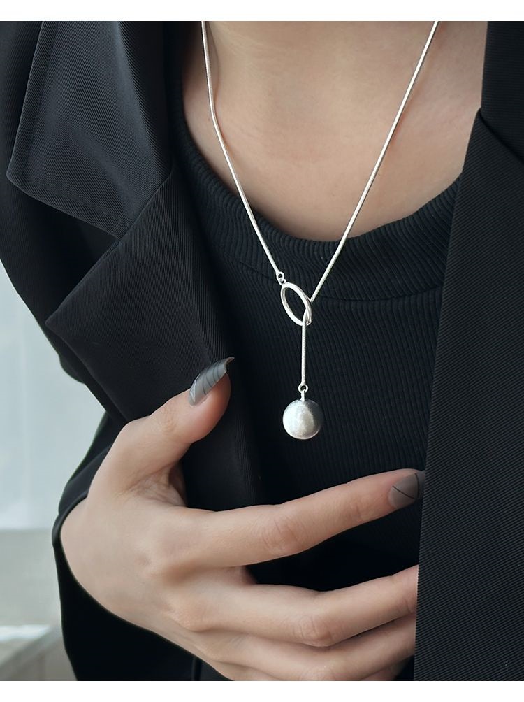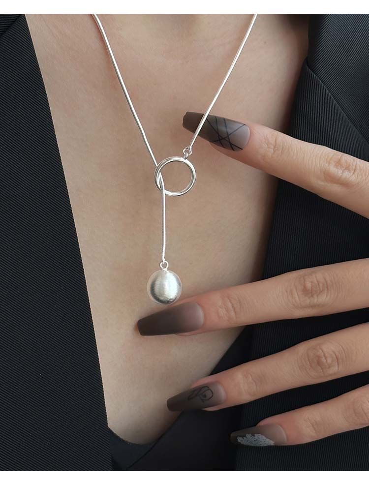 ネックレス 新作 丸い首輪 ロングネックレス レディー ins色落ちしないフレンチ 鎖骨チェーン シルバー セーターチェーン ネックレス