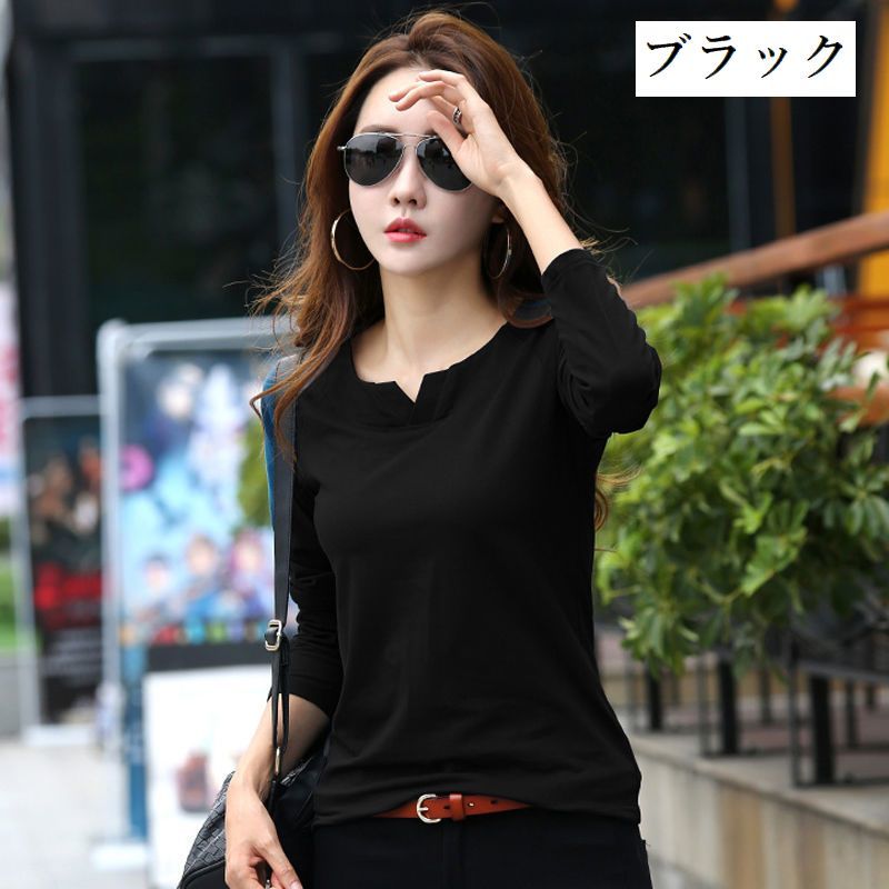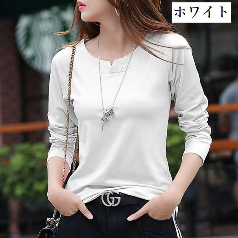 カットソー 長袖 レディース トップス ラウンドネック スリットネック プルオーバー 無地 ソリッドカラー 婦人服 女性用 シンプル 着回し カジュアル きれいめ 普段着 お出かけシーン