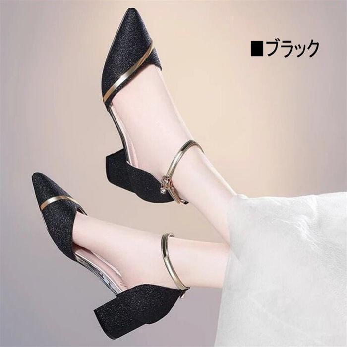 人気新作 シューズ 結婚式 レディース 疲れない パンプス 痛くない ポインテッドトゥ ストラップ キラキラ ピンヒール パーティーシューズ 歩きやすい 50代