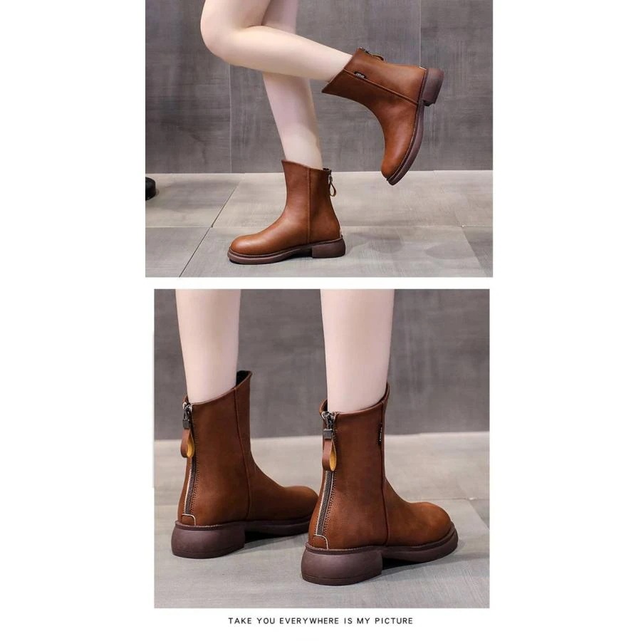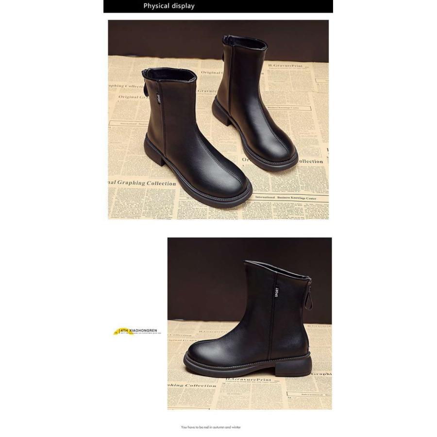 ショートブーツ レディース ローヒール マーチンブーツ ファスナー カジュアル シンプル シューズ 履きやすい 疲れにくい ショート ミドルブーツ