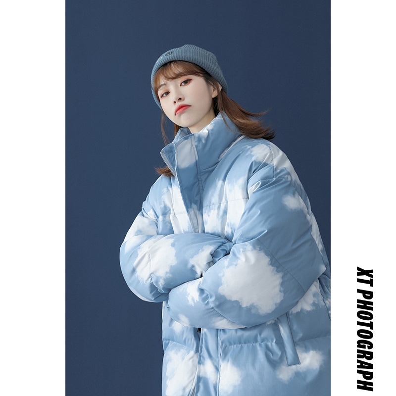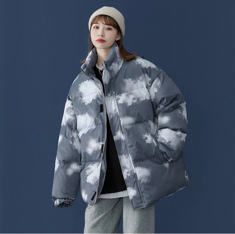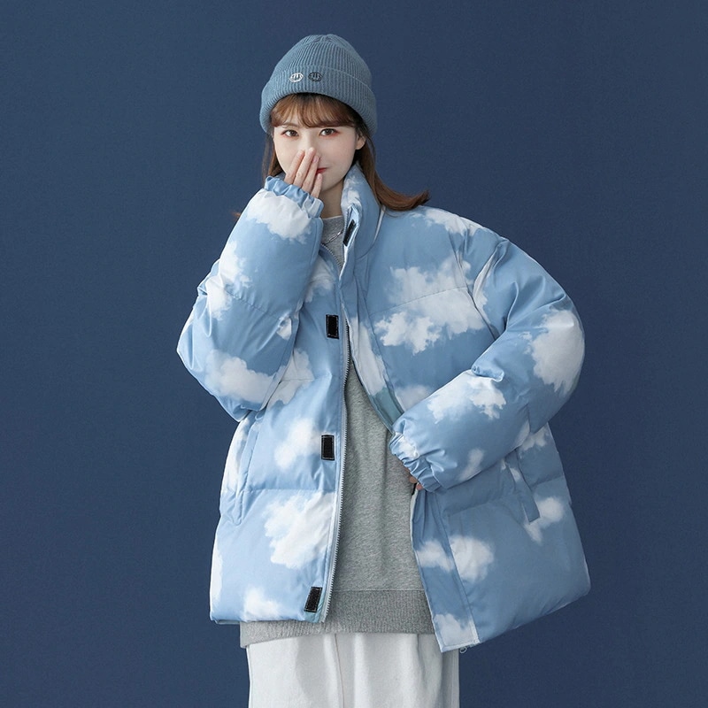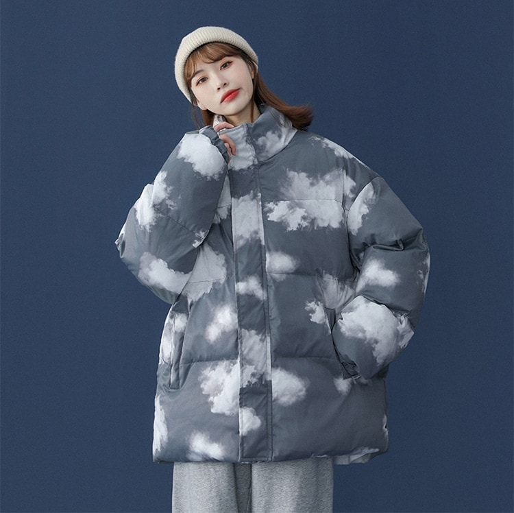 かわいい 雲柄 中綿ジャケット レディース 中綿コート 着痩せ ダウンジャケット アウター 冬 防寒 ダウンジャケット コート