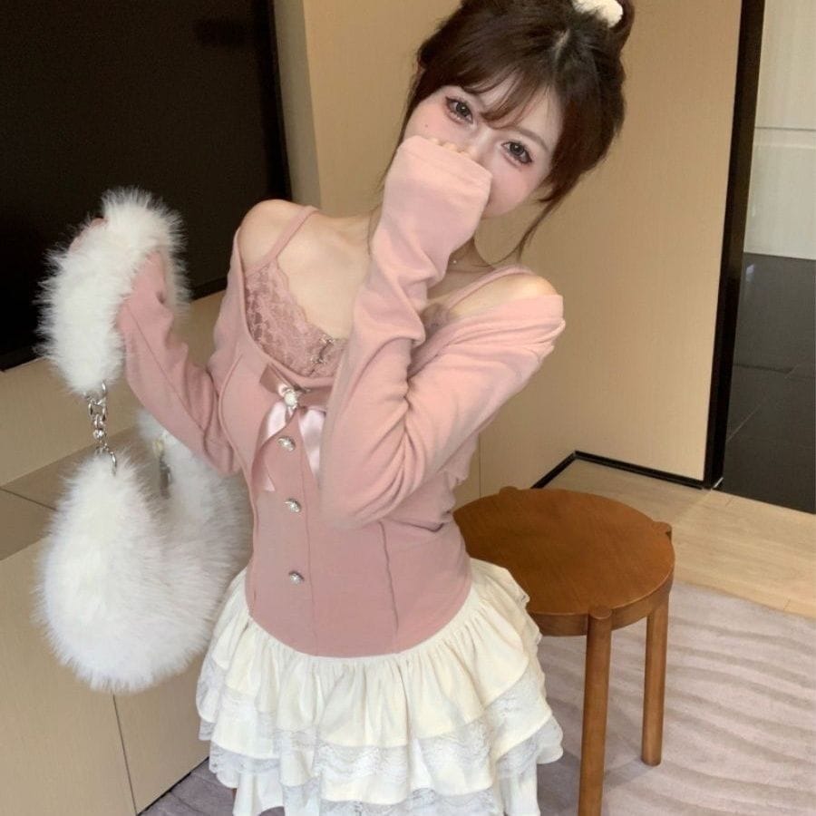 大人気ロリスーツパーティードレス 春の新作 キャミソールワンピース カーディガンコート cosplay 韓国ファッションスプリングスーツ 足が長い やせて見える