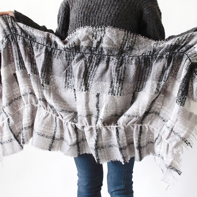 ストール 肩掛け マフラー ポンチョ 羽織 レディース あったか ギャザー チェック 5way ゴム ボタン 前閉じ ボリューミー ボリューム ふわふわ くしゅくしゅ