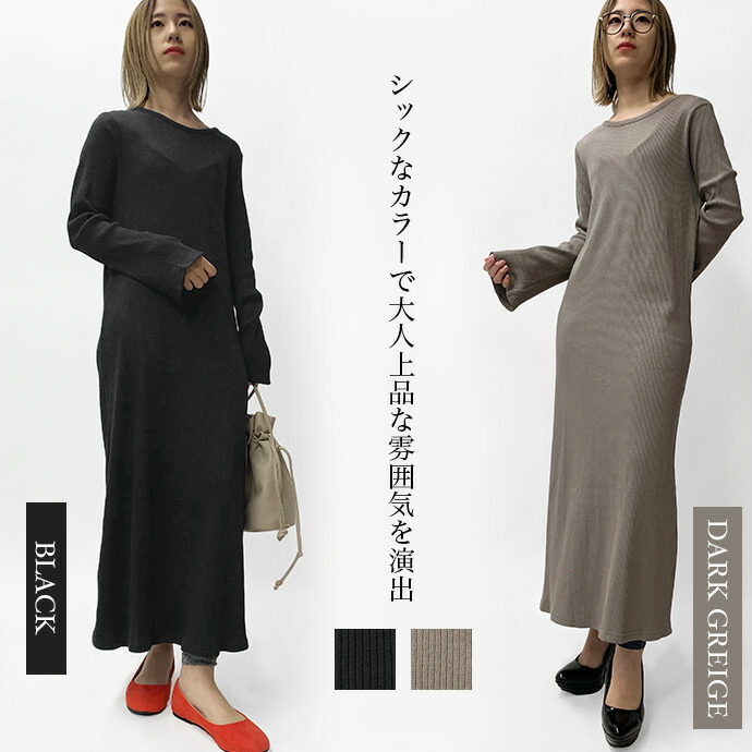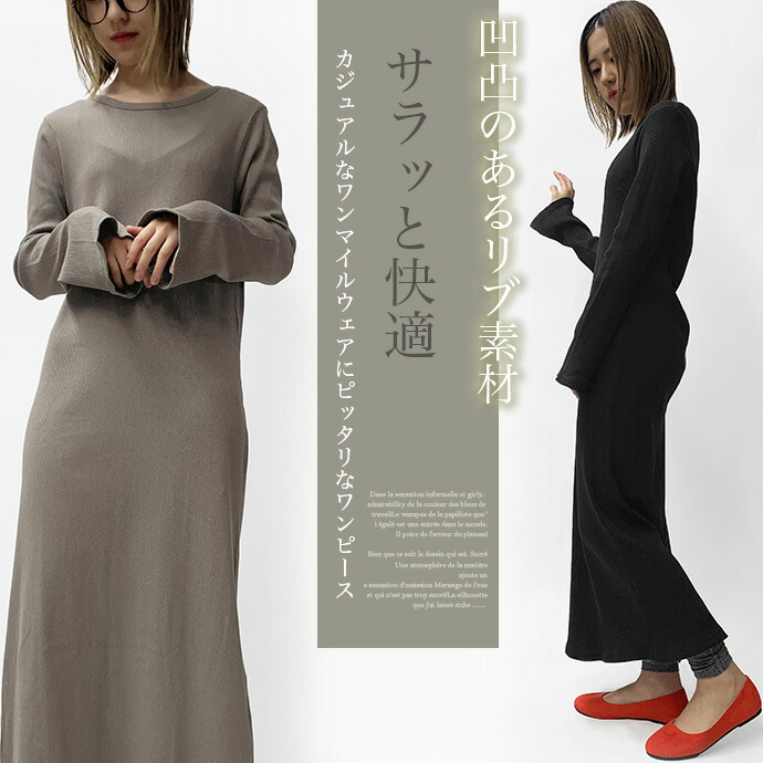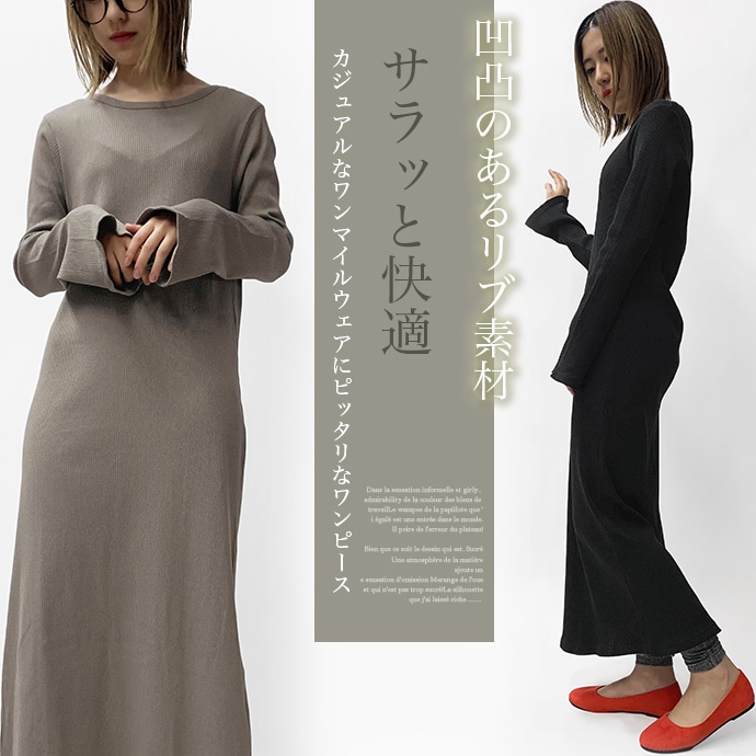 綿100%のリブ編みしたカットソー素材を使用したロングワンピース。