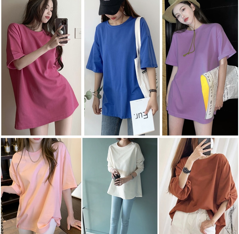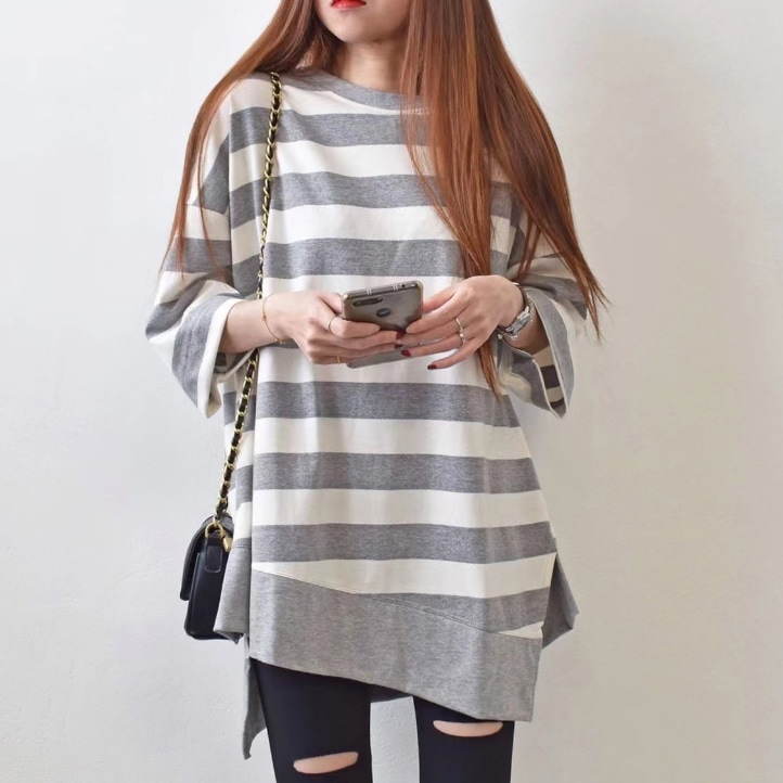 大人気ロングセラーのゆったりTシャツ 定番レディースTシャツ 半袖 長袖 七分袖 レディーストップス ゆったり シンプル ビッグT Tシャツ 無地 ボーダー 春夏