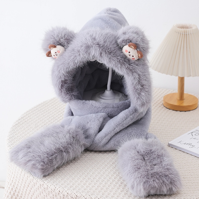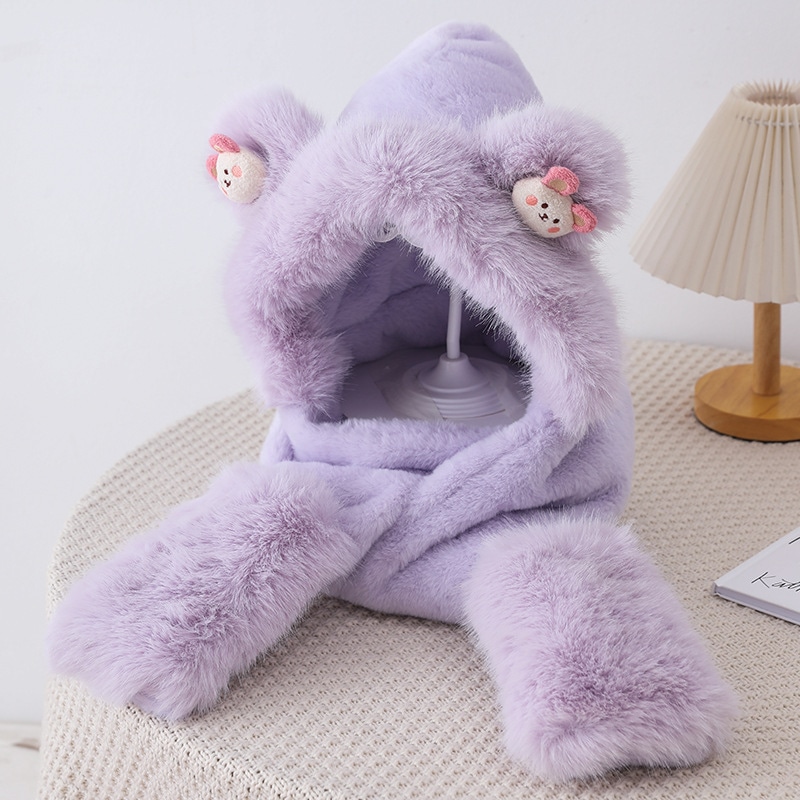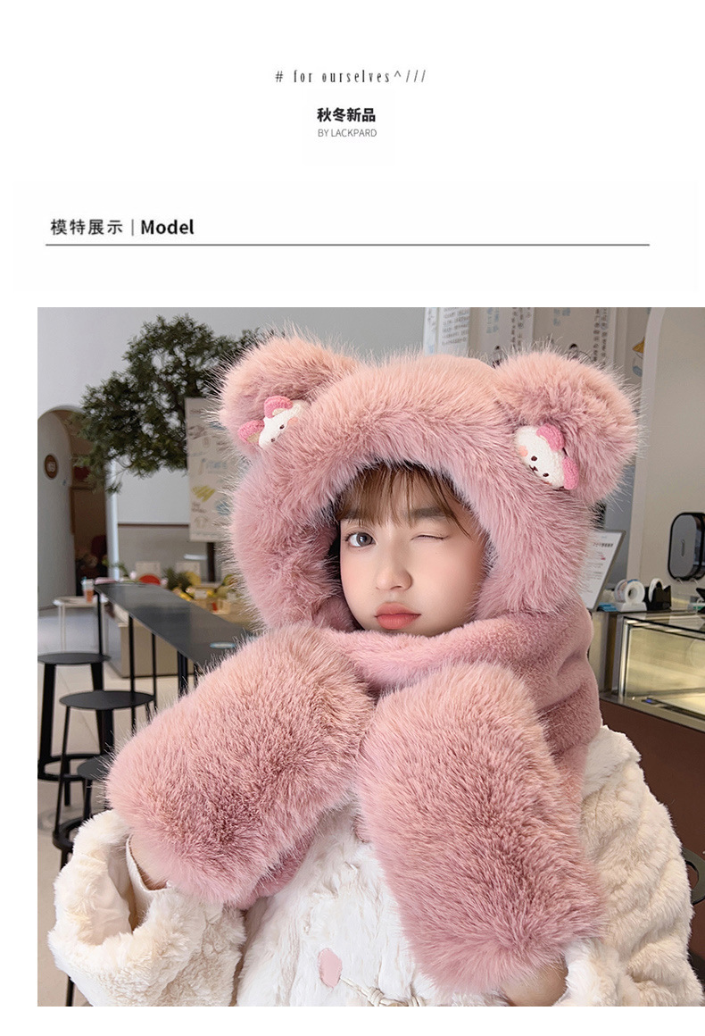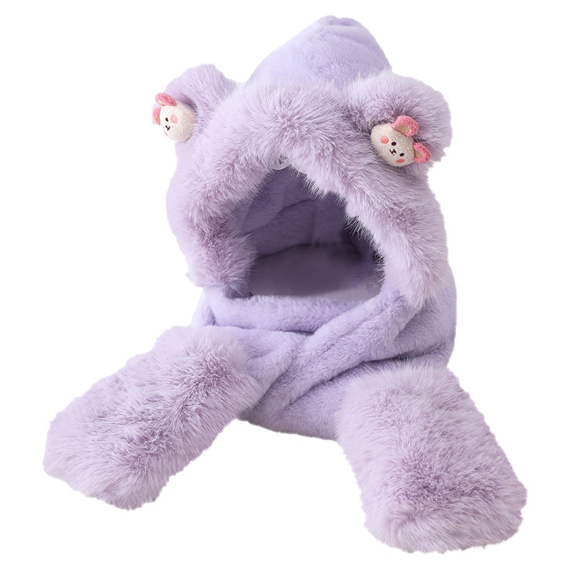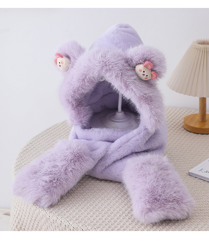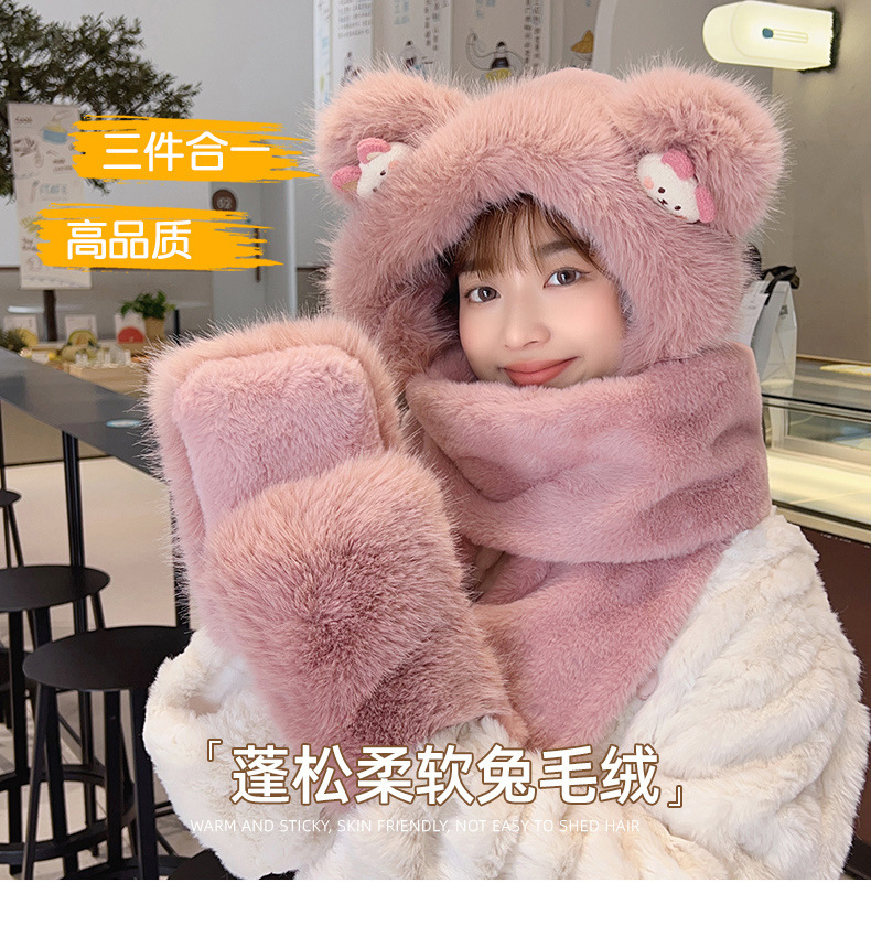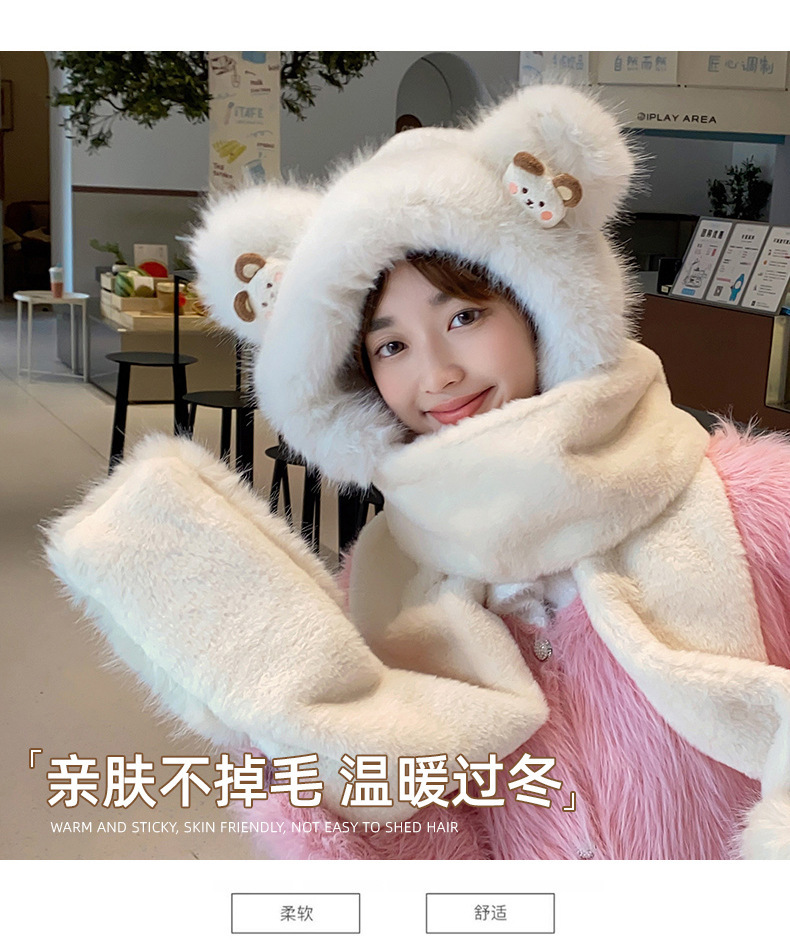 耳あて イヤーマフラー 冬の新しい漫画のクマのぬいぐるみスリーピース女性屋外防風帽子マフラー手袋ワンピース帽子 耳あて イヤーマフラー