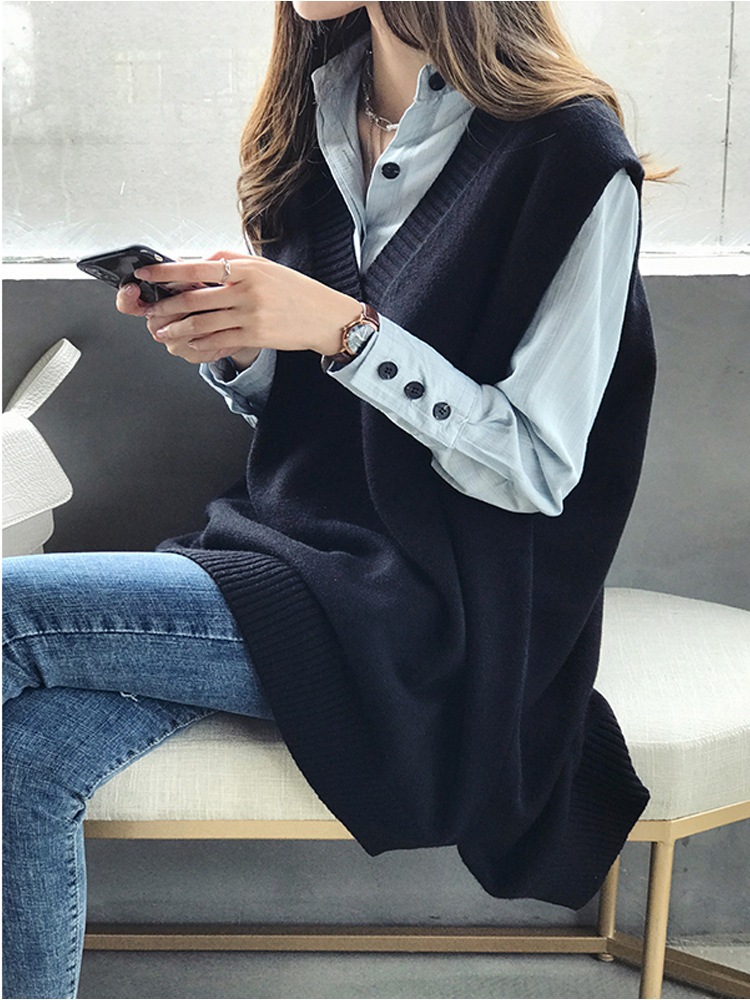 ニュースタイル オシャレ Vネックスリット ベスト 百掛け ゆったり 着痩せ トップス ニットベスト ロングベスト 通勤 ベスト