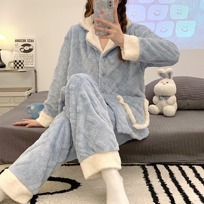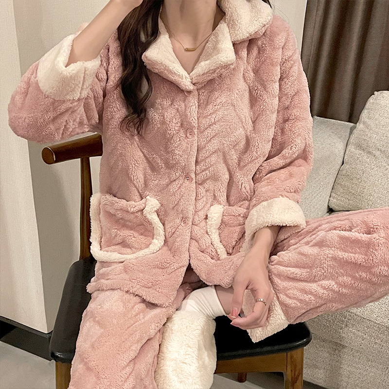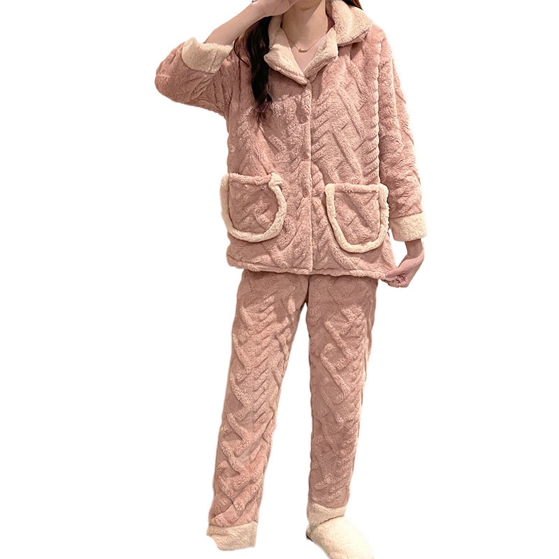 冬のパッド入り厚手サンゴベルベット2024新しい春と秋のフランネル暖かいスーツホームウェア パジャマ ルームウェア パジャマ ルームウェア
