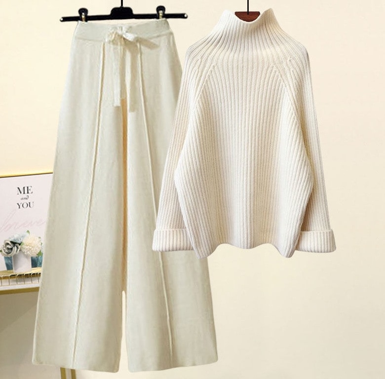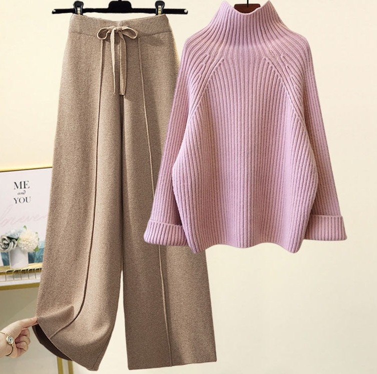 秋冬 新作 おしゃれ 気質 レディースセットアップ ニット アウター 二点セット 上下セット セーター ニットワイドパンツ セットアップ