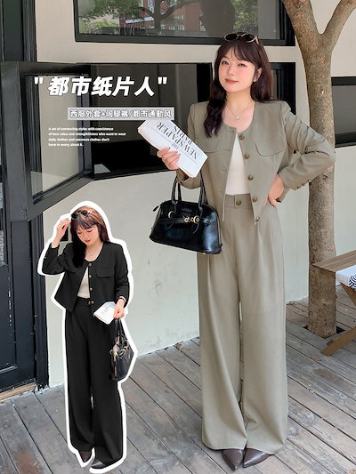 2024秋新品 スーツセット XL-5XL 大きいサイズ 上下セット 体型カバー レディース 通勤OL セットアップ メガ割