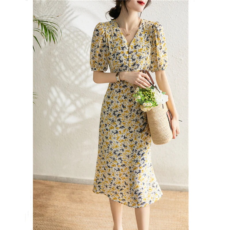 0代40代ワンピース 秋冬新作 長袖ワンピース きれいめ 花柄ワンピース シフォン フレアスカート 通勤リネンワンピ 長袖ロング マキシ丈ワンピ