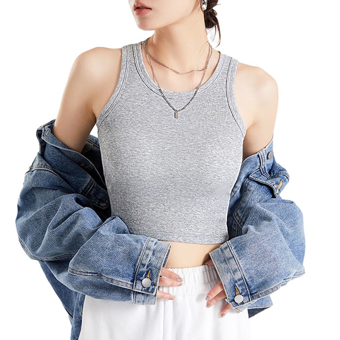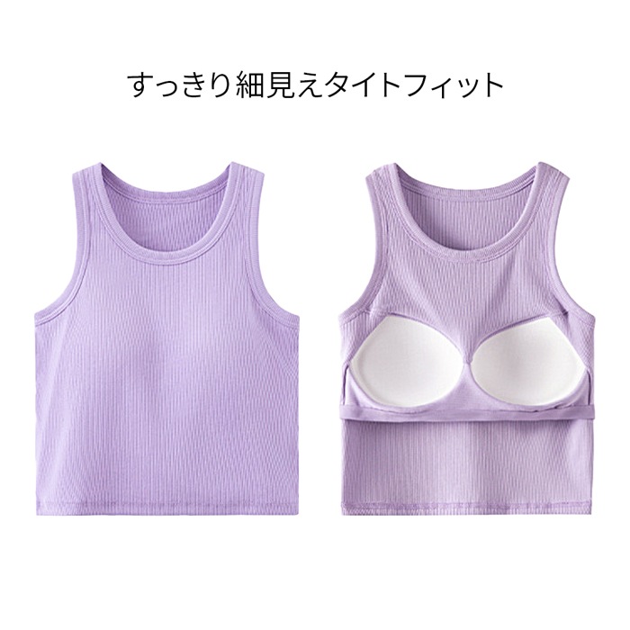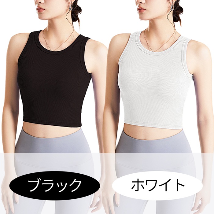 カップ付き タンクトップ クロップド丈 ブラトップ ブラタンク レディース ノースリーブ 通気性 リブ多編み しっかりした生地 フィット rr-005