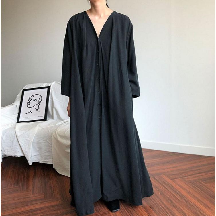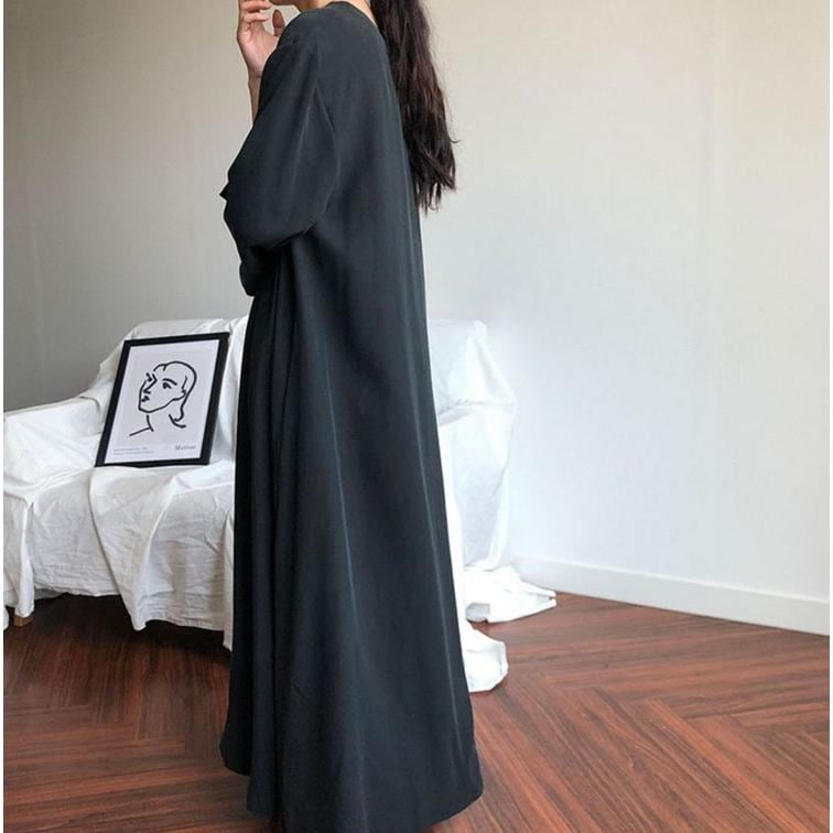 マキシワンピース レディース 40代 春秋 長袖ワンピース Vネック 黒ワンピース ロング丈フレアスカート オシャレ韓国風 ゆったり 30代 50代