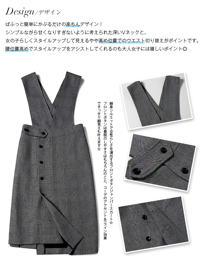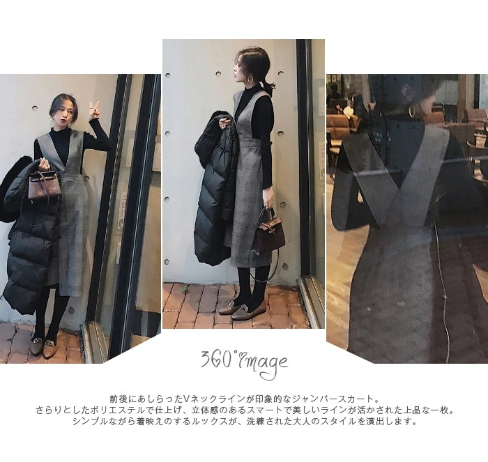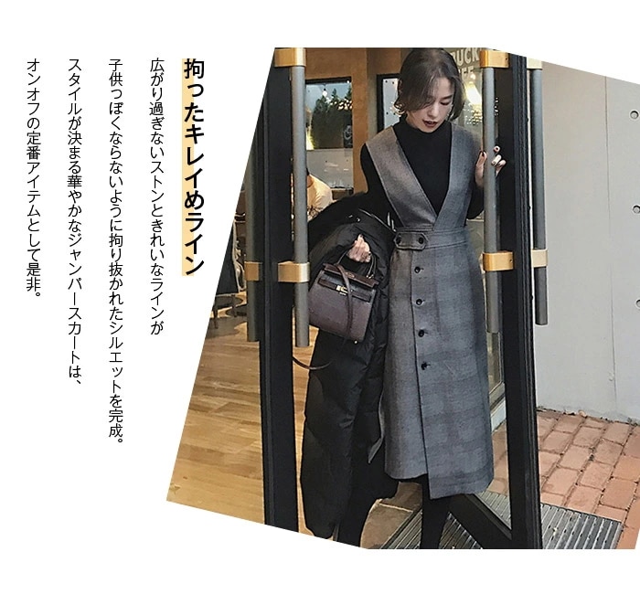 ジャンパースカート 秋 冬 ジャンスカ ワンピース グレンチェック セットアップ サロペットスカート ワンピーススーツ ミモレ レディース オールインワン ニット インナー タートルネック 長袖