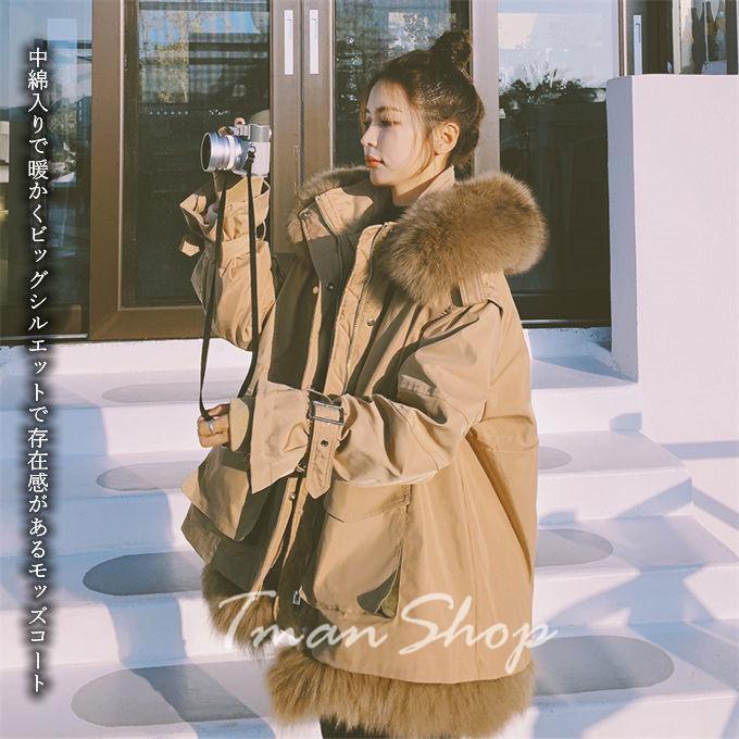 モッズコート レディース 中綿コート ファー付き取り外し可能 ミディアム丈 アウター 大きいサイズ 着痩せ 上品 あったか 韓国ファッション 冬服