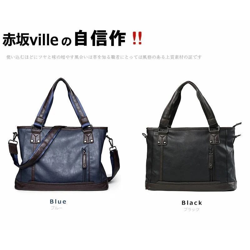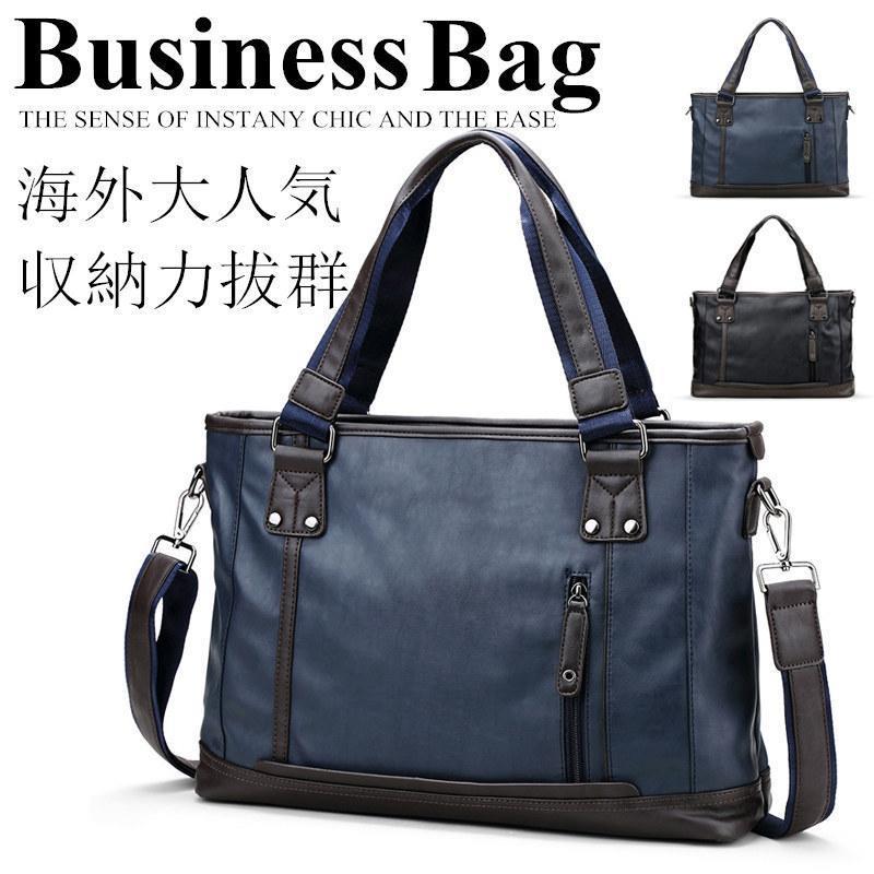 ビジネスバッグメンズpuレザー本革トートバッグ ショルダーバッグ メンズ 2WAY カジュアル ブラック ネイビー通勤バッグバレンタインプレゼント