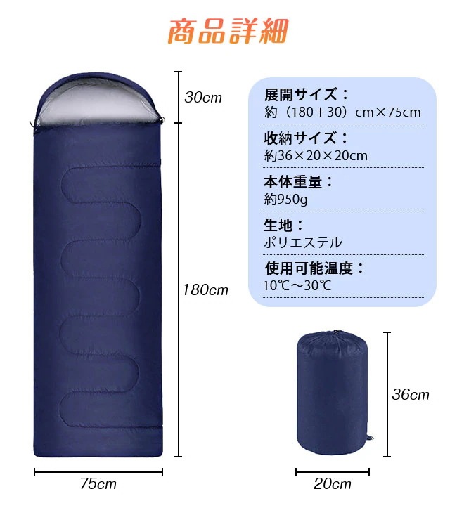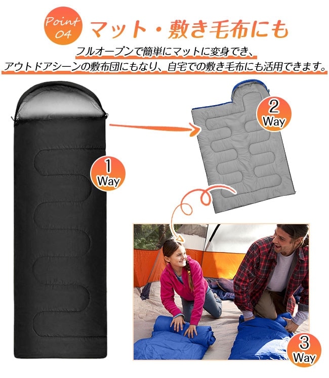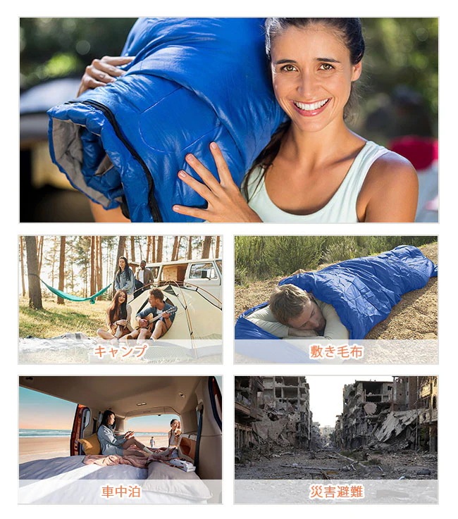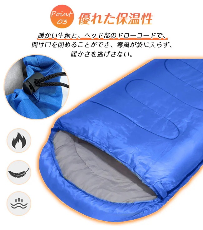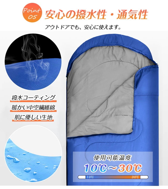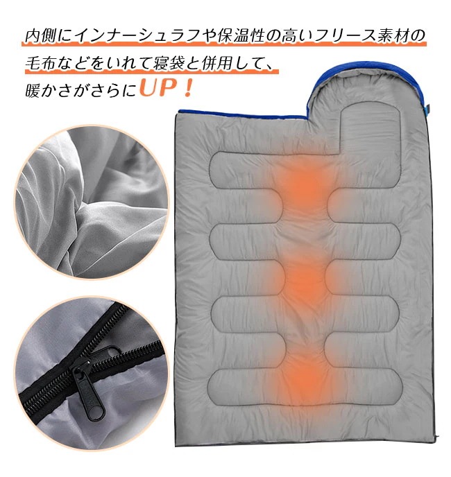 寝袋 秋冬用 シュラフ 封筒型 コンパクト 災害避難 フード付 キャンプ 車中泊 防災 防寒グッズ 掛け布団 撥水 旅行 登山 アウトドア 軽量 洗える
