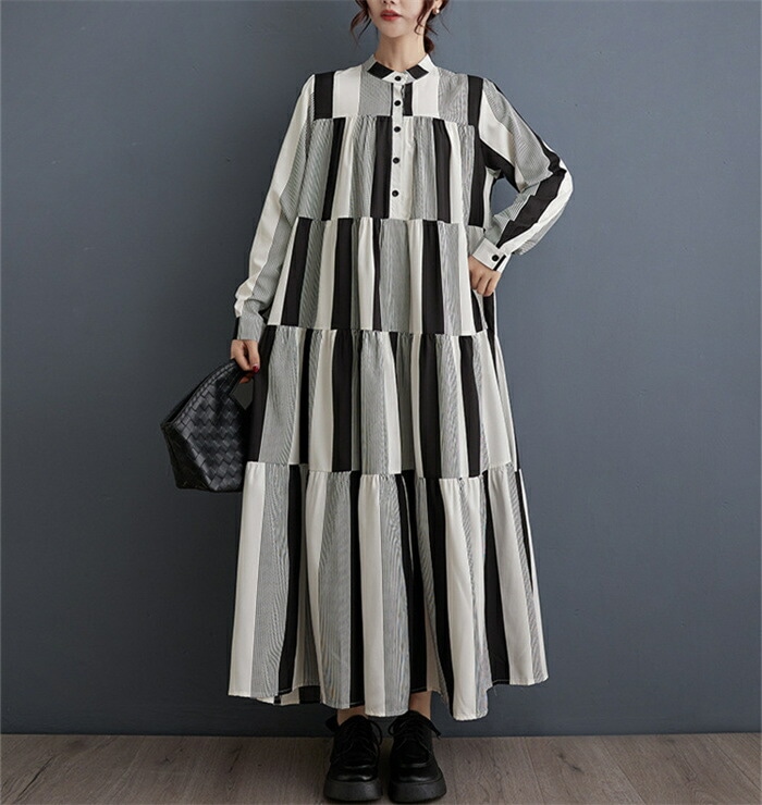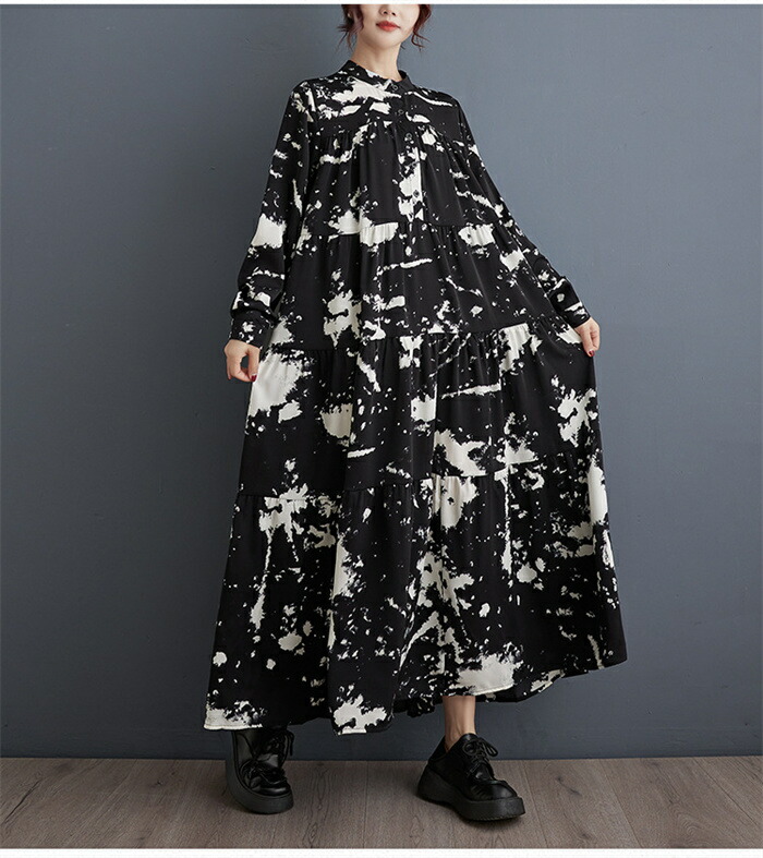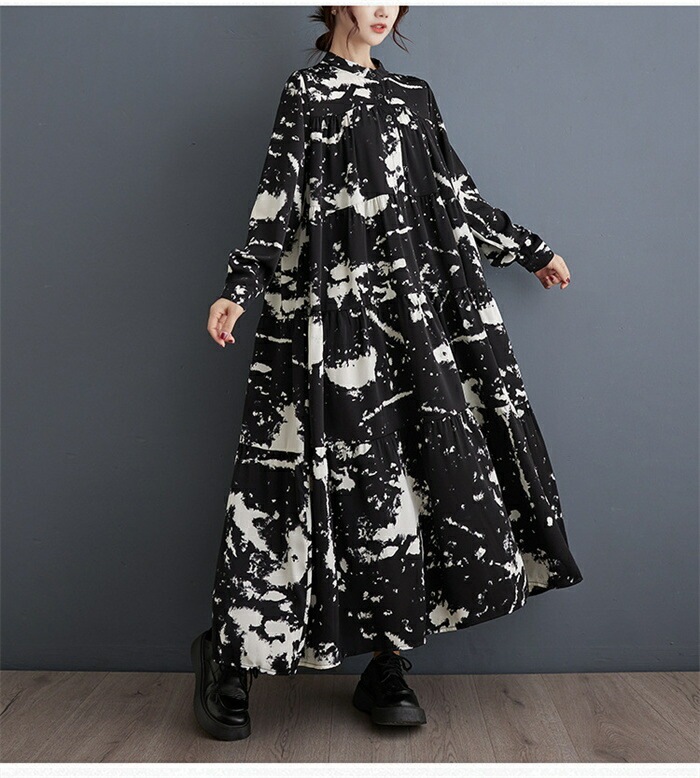 モード ワンピース レディース 長袖 春秋 シャツワンピース 柄 ロング丈 マキシ 大人 ゆったり おしゃれ きれいめ ロングワンピース Aライン 体型カバー 楽チン カジュアル 着回し ルームウェア