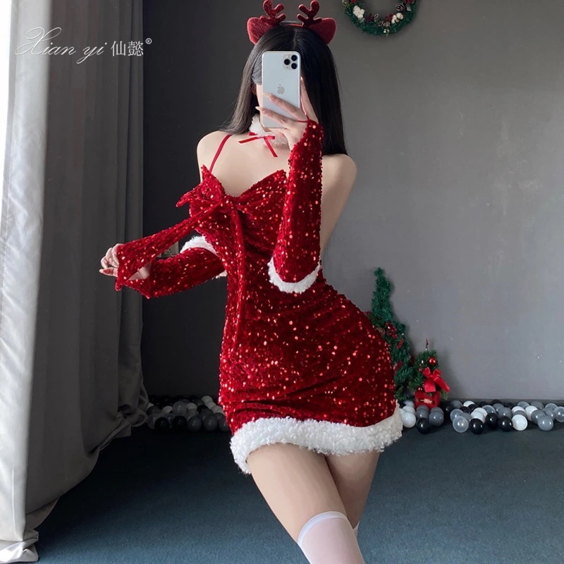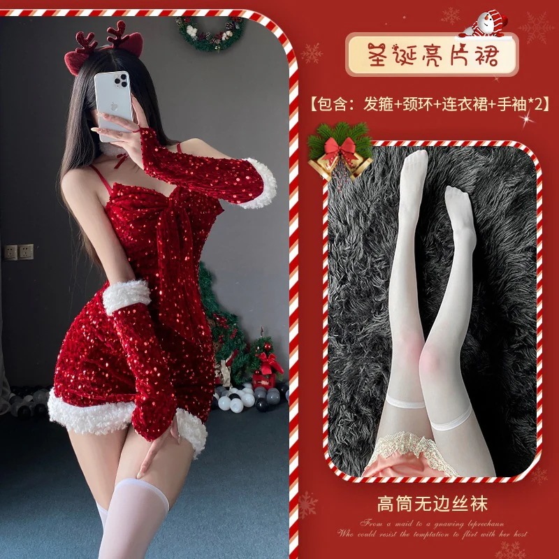 qoo10 コスプレサンタコスプレ ランジェリー クリスマス 情熱 ナイトクラブ ヒップスターショートスカート 誘惑 セクシー ユニフォーム 韓国ファッション