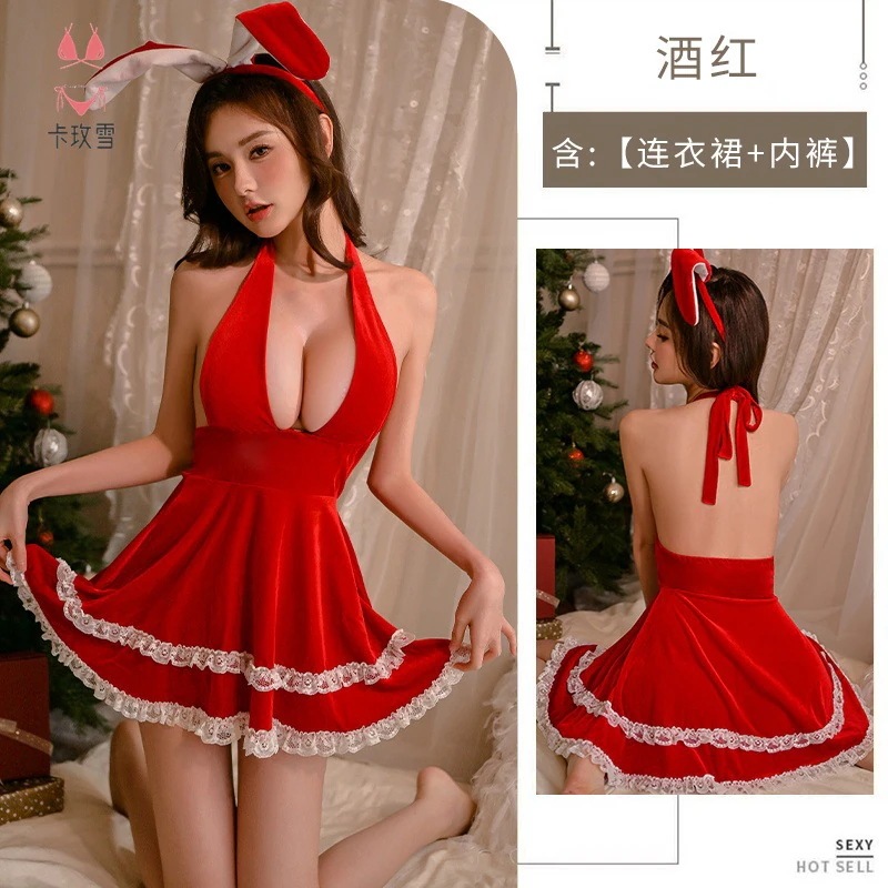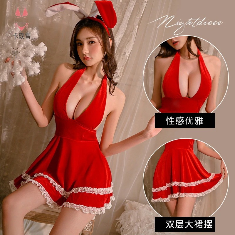 qoo10 コスプレサンタコスプレ デザイン エロ クリスマスドレス ランジェリー ネック 深いV 胸 セクシー レディース 制服の誘惑 韓国ファッション