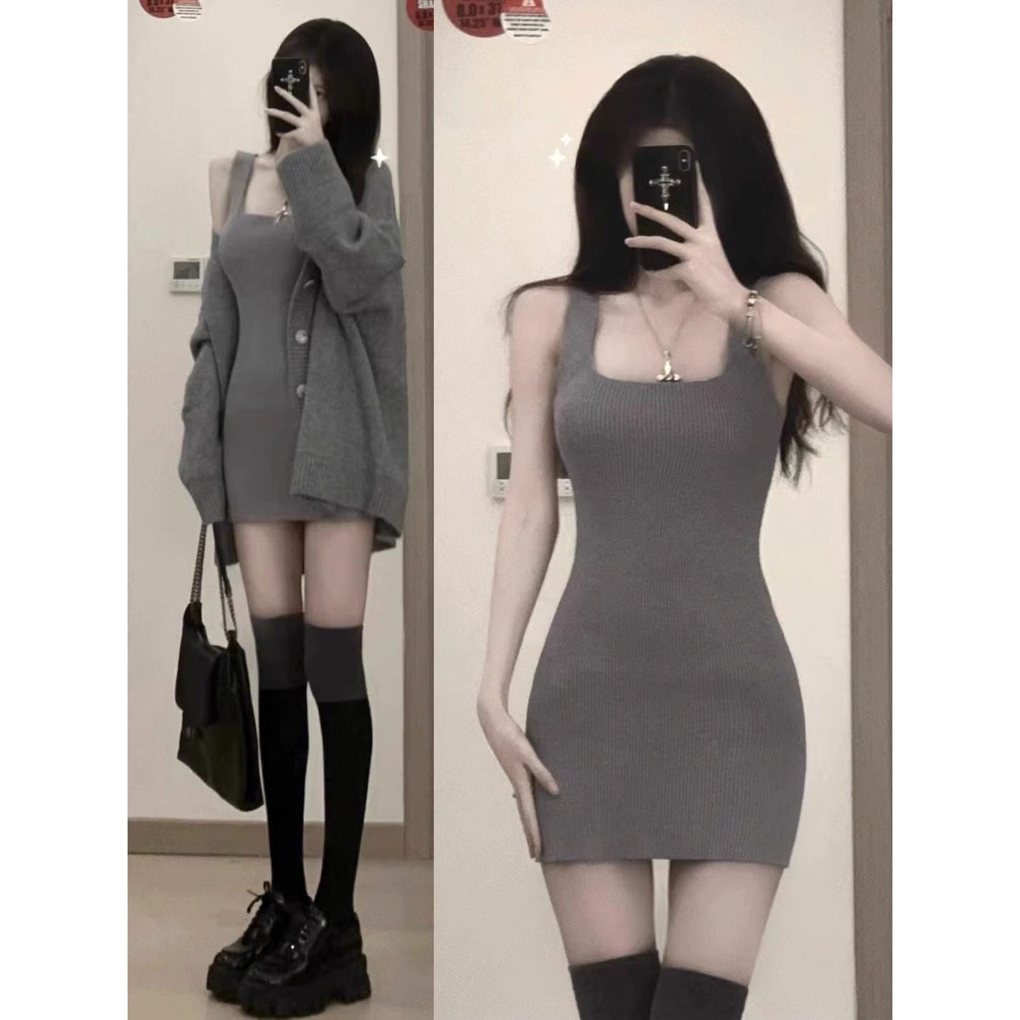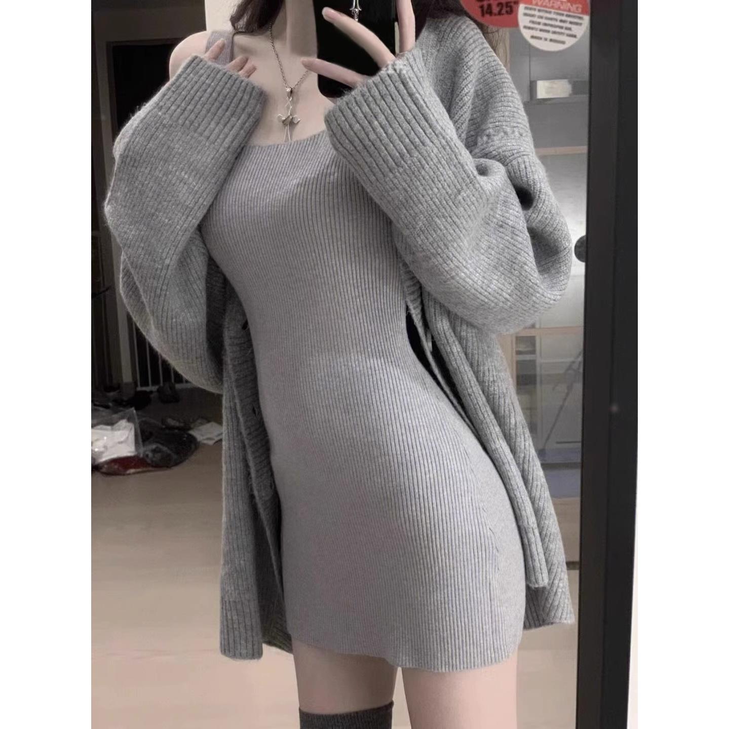 セーターニット2点セット カーディガン +キャミソールミニスカート レディース セクシー ニットワンピ セットアップ