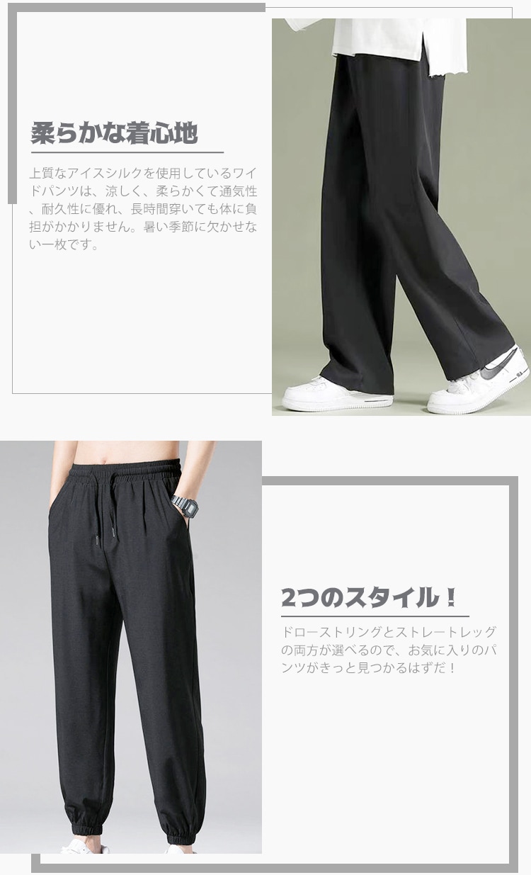 ワイドパンツ メンズ ズボン ジョガーパンツ パンツ 夏 冷感 接触冷感 ゆったり 涼しい 薄 ロングパンツ ジョガー 薄手 長ズボン おしゃれ 体型カバー ストレートパンツ 男性 男女兼用 リラック
