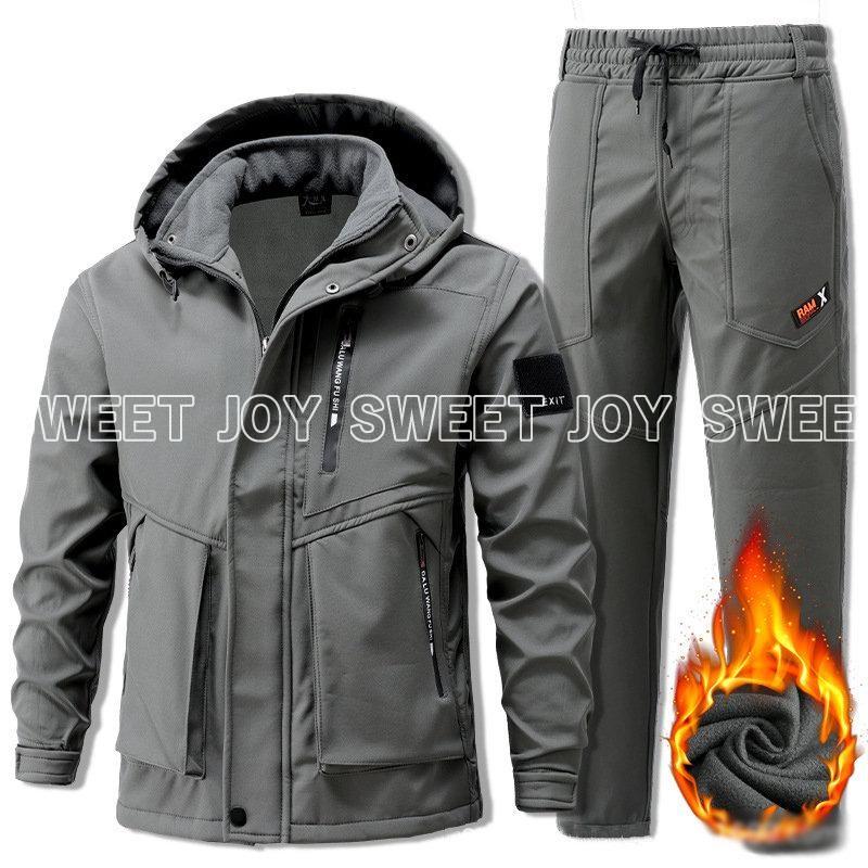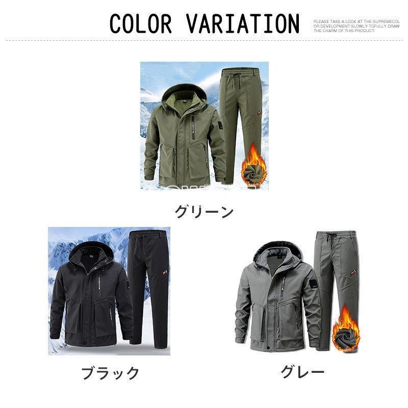 メンズ マウンテンジャケット ワークパンツ 上下セット 防寒 防水 撥水 防風 厚手 裏起毛 裏ボア マウンテンパーカー 長ズボン 2点セット